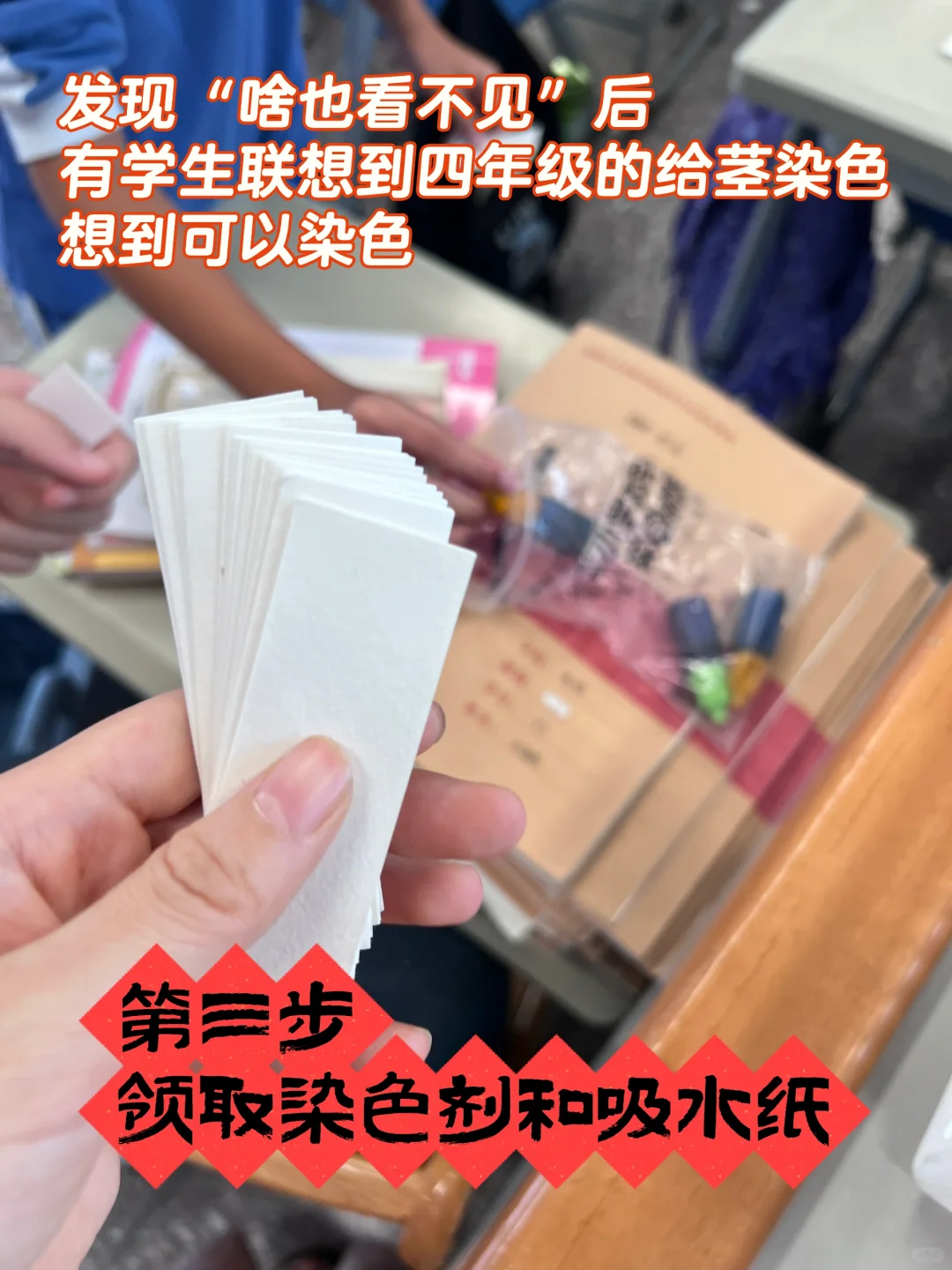 后面会有学生联想到四年级“给茎染色”的实验,想到【染色】