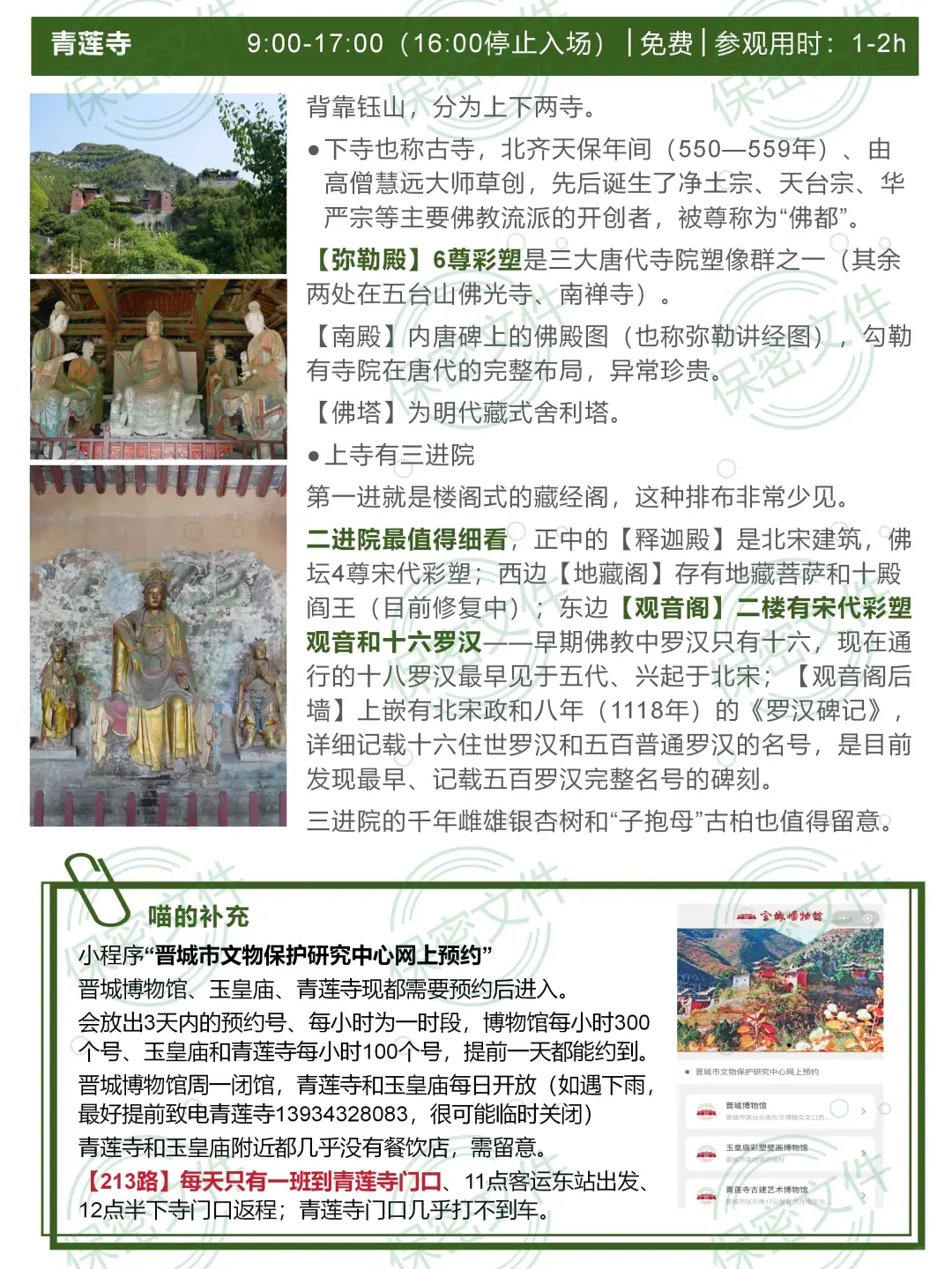 [二R]晋城博物馆周一闭馆,青莲寺和玉皇庙每日开放,9:00-17:00(16:00停止入场)。