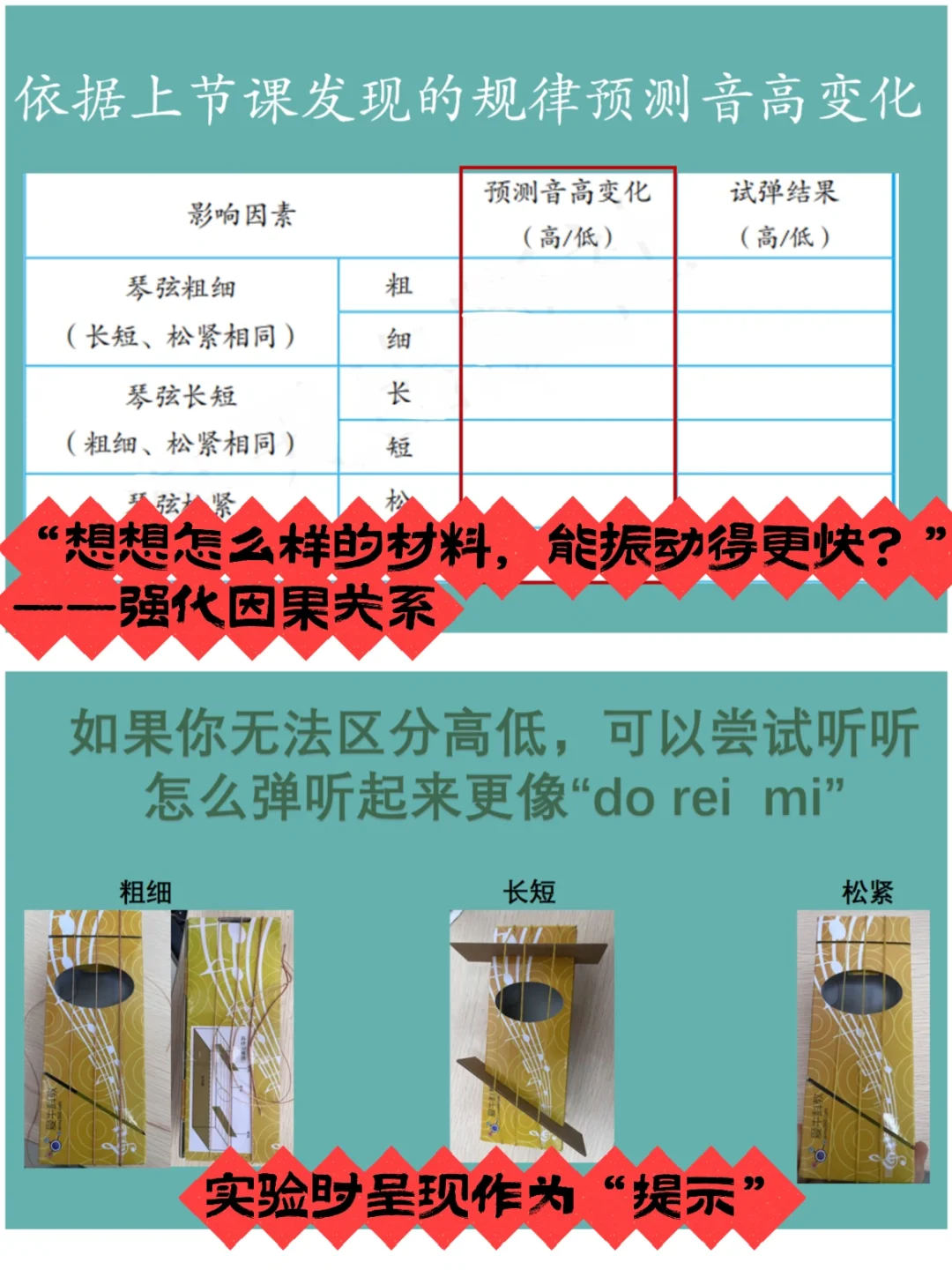 🔵为的是给下一课【收集经验】,帮助后期梳理经验形成【物质特征→振动快慢→声音高低】的因果关系