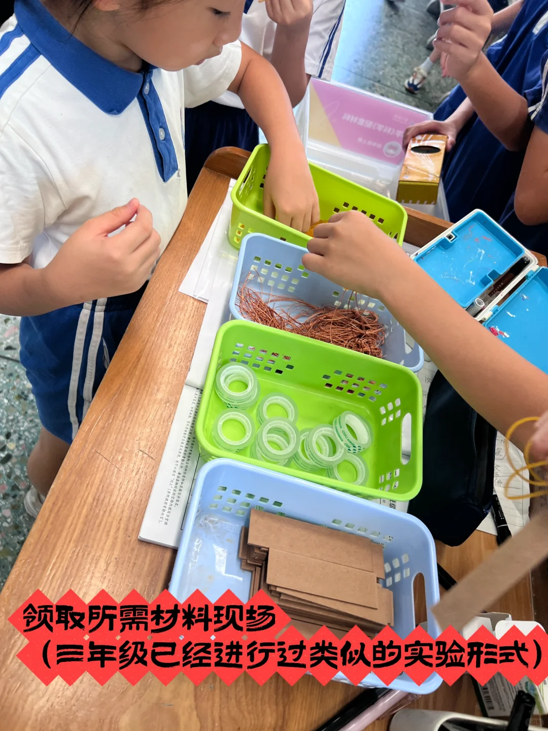 把零散的材料分类放进框子里,要求【一次探究一个因素】,探究完【归还原材料】、领取新材料
