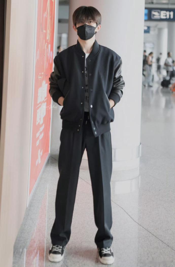 #易烊千玺北京出发巴黎时装周##易烊千玺机场全黑look#易烊千玺的机场全黑 look 时尚感十足,他踏上巴黎时装周的征程,愿一切如意,起落平安。