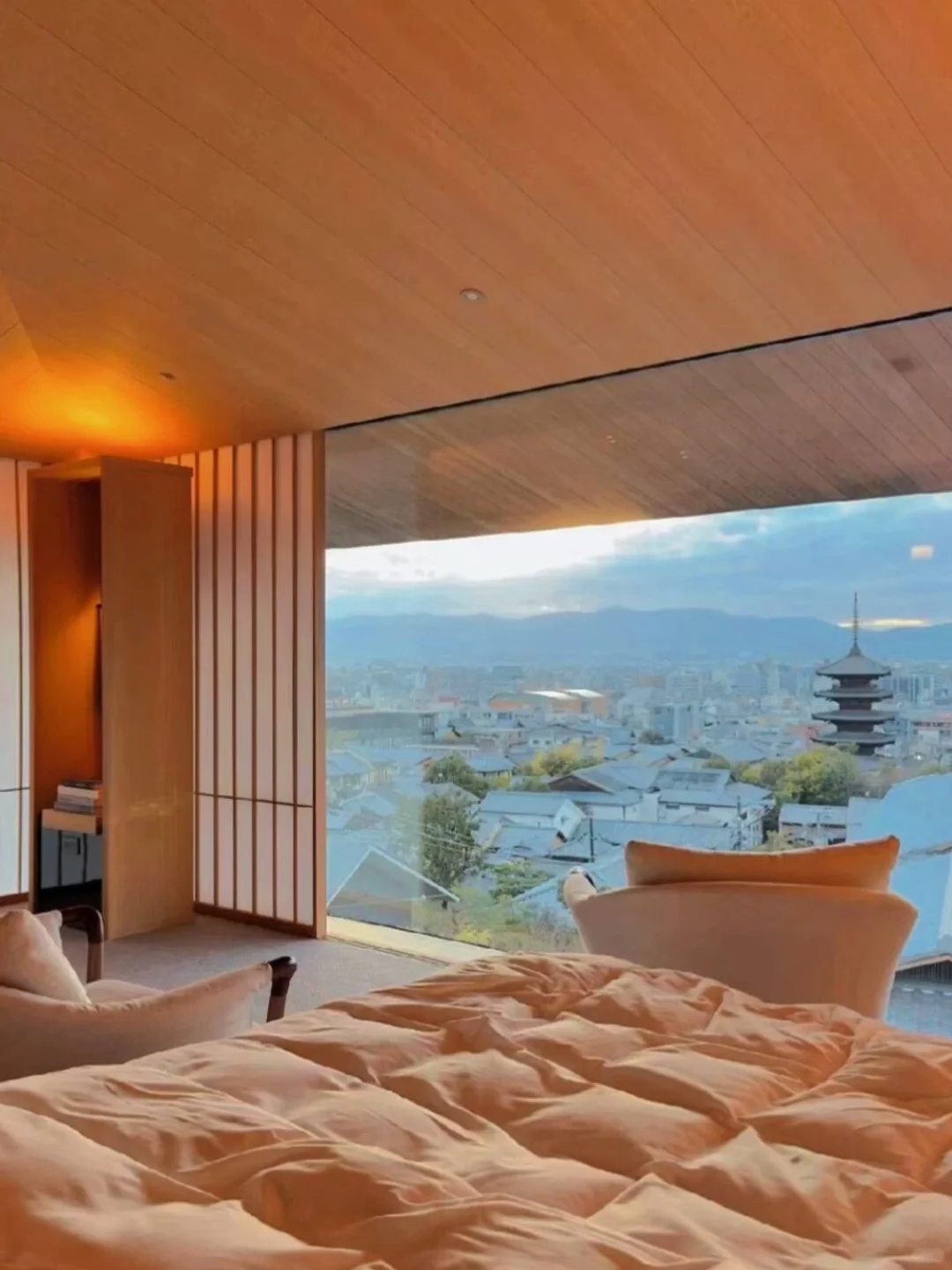 套房🛏真真正正的270度无死角的景致,二年坂的町屋及八坂塔近在眼前,春赏樱花🌸秋赏枫叶🍁足不出户欣赏大半座京都城的景致