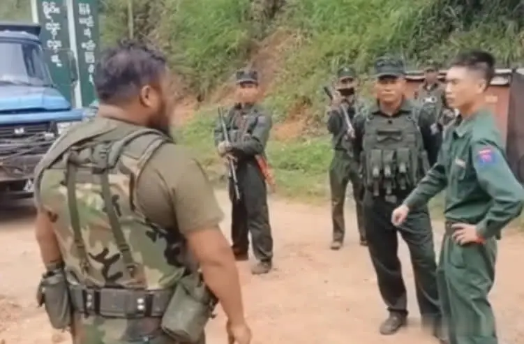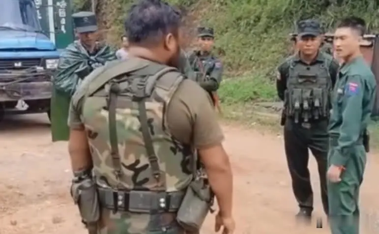 这就是克钦军的可恶之处。你想收费就在你自己的地盘内收费,别人管不着,但是你克钦军却跑了果敢军的地盘收费,抢劫果敢军控制的区域,这实在是太嚣张了。当然克钦军也知道自己做的没道理,所以说也没有过分的强硬。之后果敢军与与克钦军的交涉,但是没有结果,克钦军仍然在收费,就看旁边有一辆大货车,就在等着双方的谈判,果敢军让货车免费通过,克钦军不让,双方就这么这样较劲。