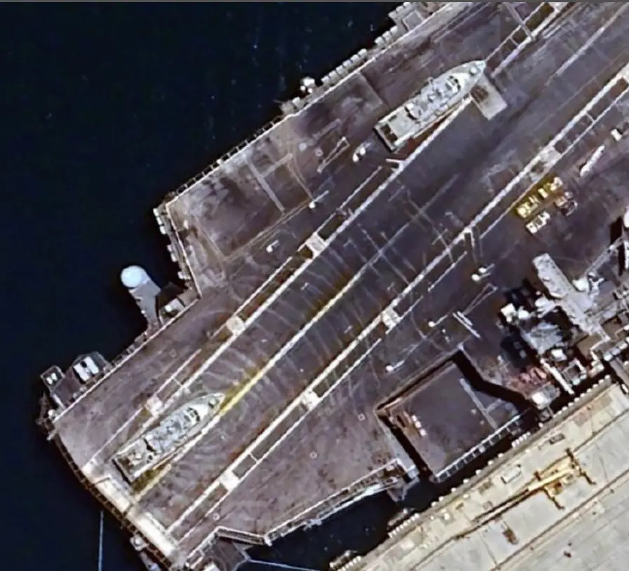 图为里根号上面赫然摆放上了三艘导弹舰。