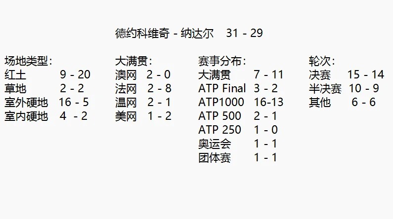 德约纳达尔H2H详细历史记录 通过ATPtour官网和ChatGPT整理收集了