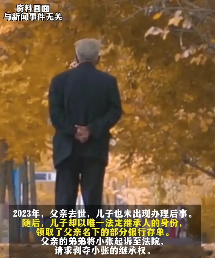太狠心了!上海一男子,跟父母发生争吵后离家出走,此后30多年下落不明,父亲向法院申请宣告其死亡时,男子突然出现,父亲想要见他一面,可男子始终拒绝。父亲去世后,男子没有处理老人的身后事,而是以唯一继承人的身份,领取了老人的部分银行存单。老人弟弟告上法庭,说侄子对大哥大嫂30多年不闻不问,构成遗弃,应当剥夺继承权,由自己继承全部遗产,法院判了。