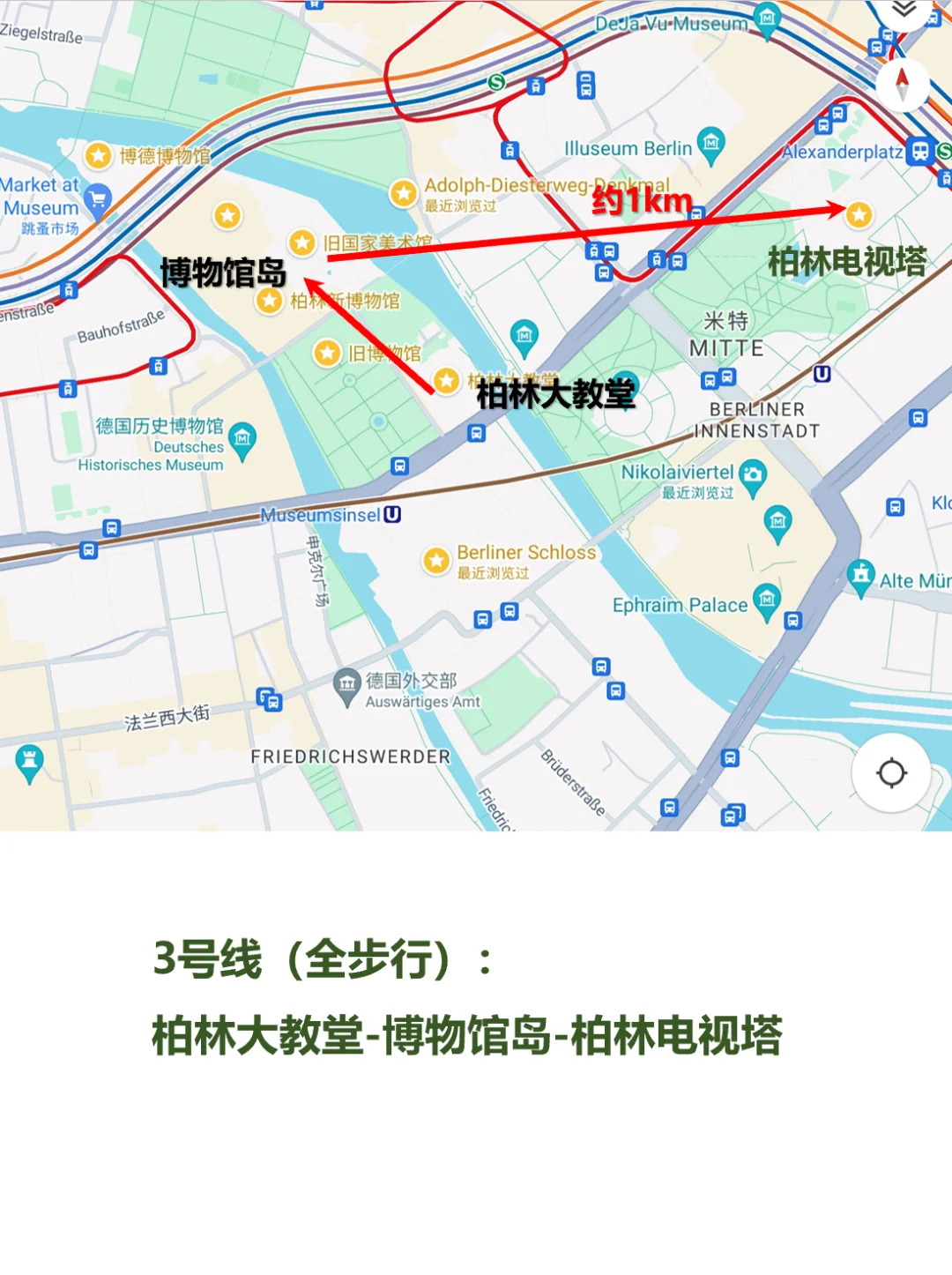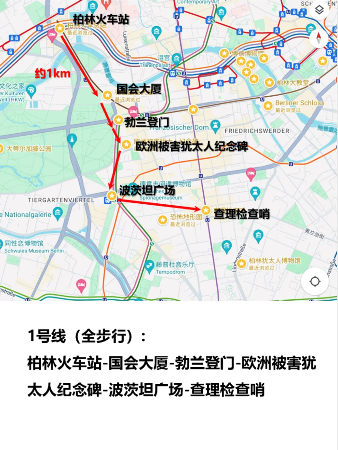 分享三条德国🇩🇪 柏林citywalk的路线计划,如果大家时间紧凑的话,可以按顺序①②③快速走完这一圈,只不过博物馆可能没有时间仔细逛,如果大家时间充分,可以分三天走,一天一条线,更加全面的体验。