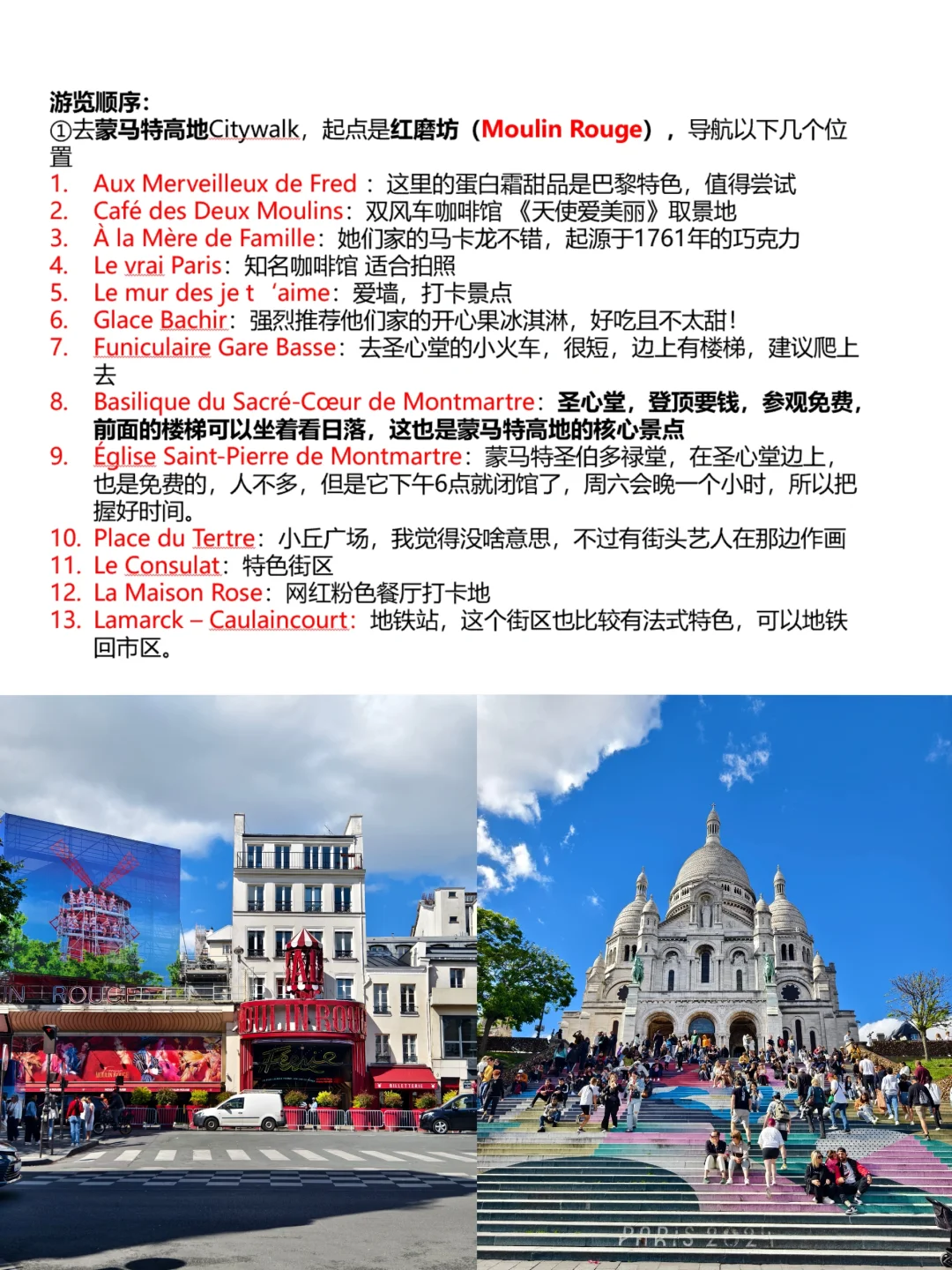 蒙马特高地Citywalk,起点是红磨坊(Moulin Rouge),导航以下几个位置