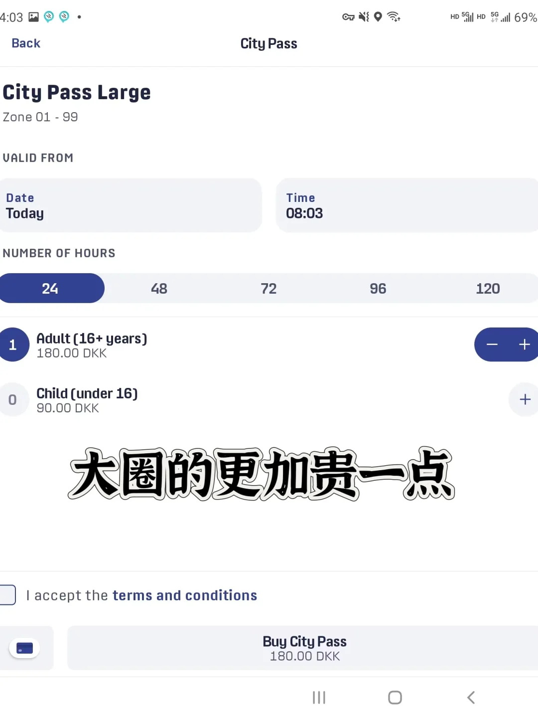 [向右R]如果是选择large的,那么贵一点,24h要180DKK,如图10
