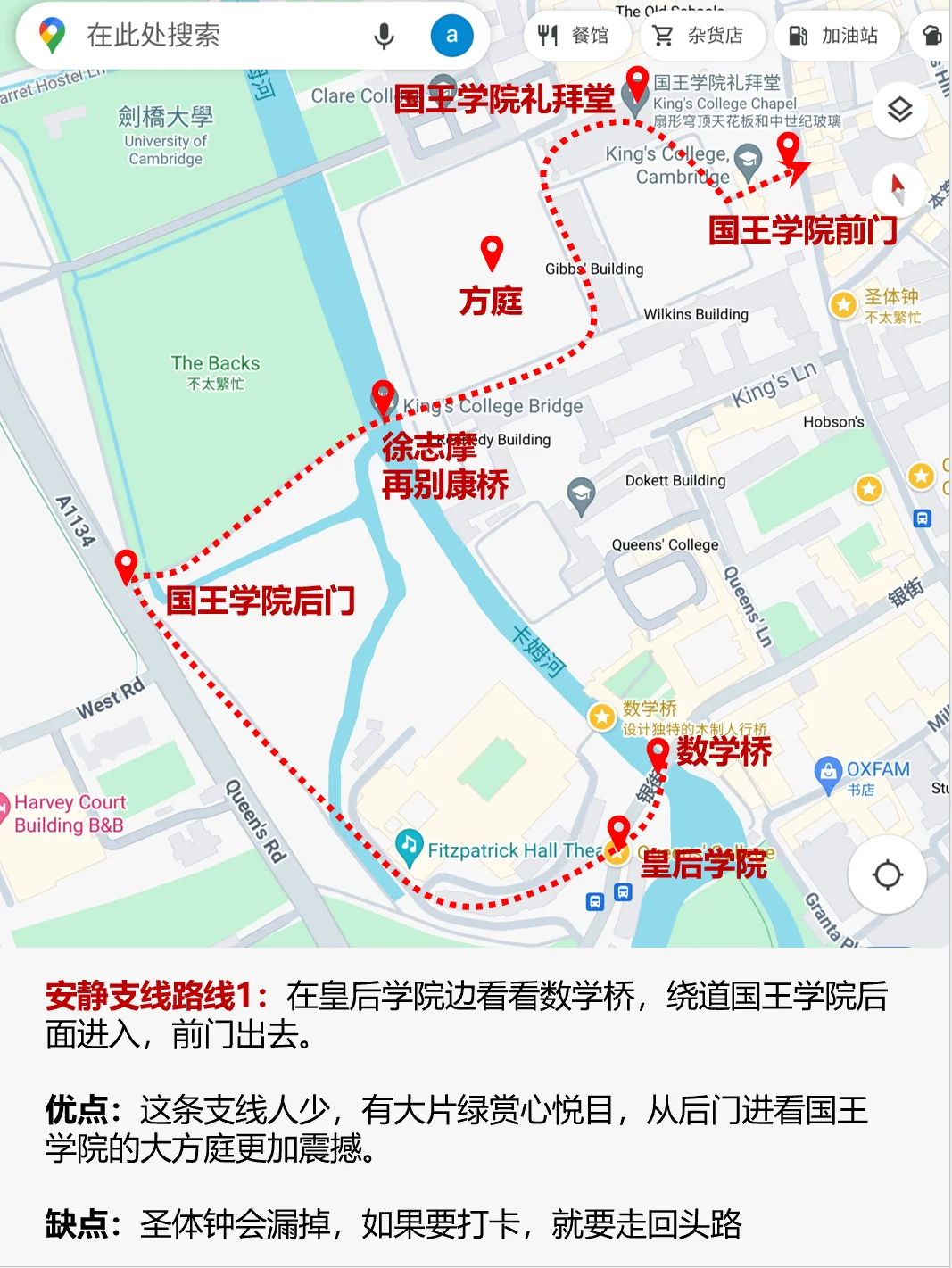 [向右R]知名的剑桥景点和学院主要都在去程上: