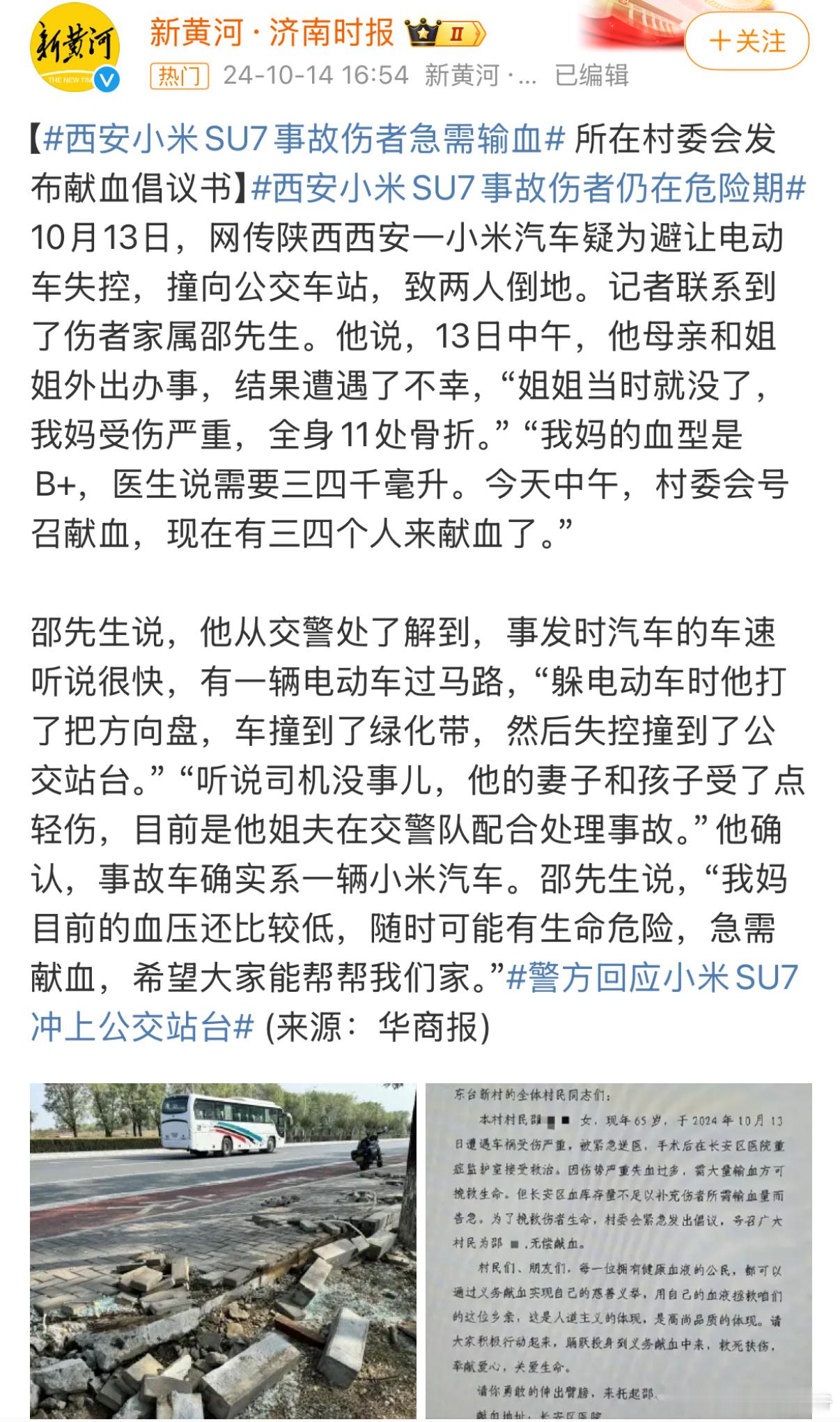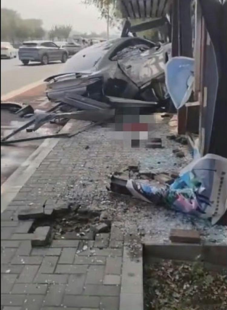 #警方回应小米su7冲上公交站台##小米SU7冲上公交站台致2人受伤#