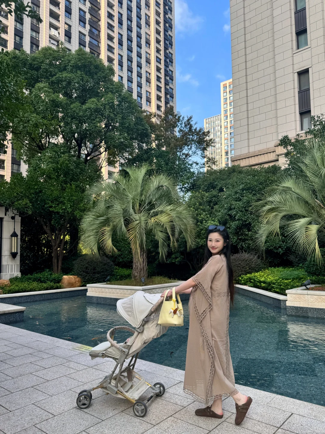 跟着她一块遛娃,转个头的功夫变出一辆婴儿车出来