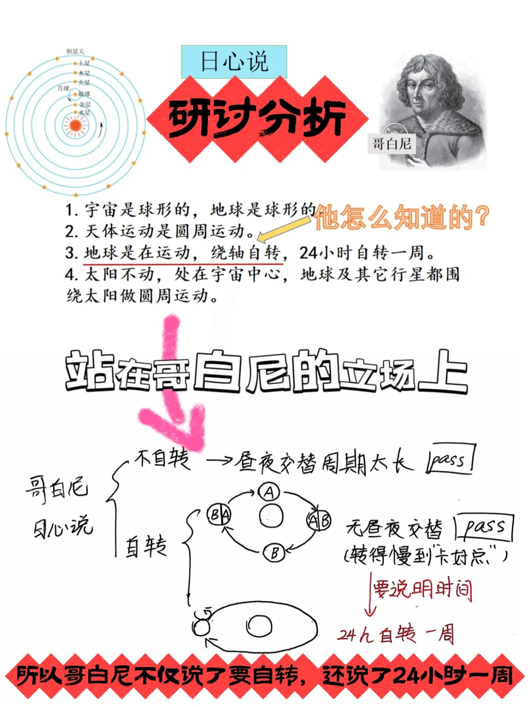 研讨逻辑链如p6→所以哥白尼不仅说了地球会自转,还特地【说明了自转周期】是24小时