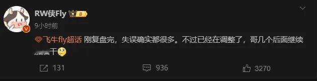Fly发文:刚复盘完,失误确实都很多。不过已经在调整了