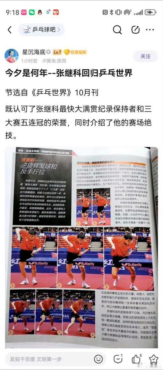 乒乓世界十月刊记录了张继科,第七代技术永远高悬在整个乒坛上方俯瞰所有人