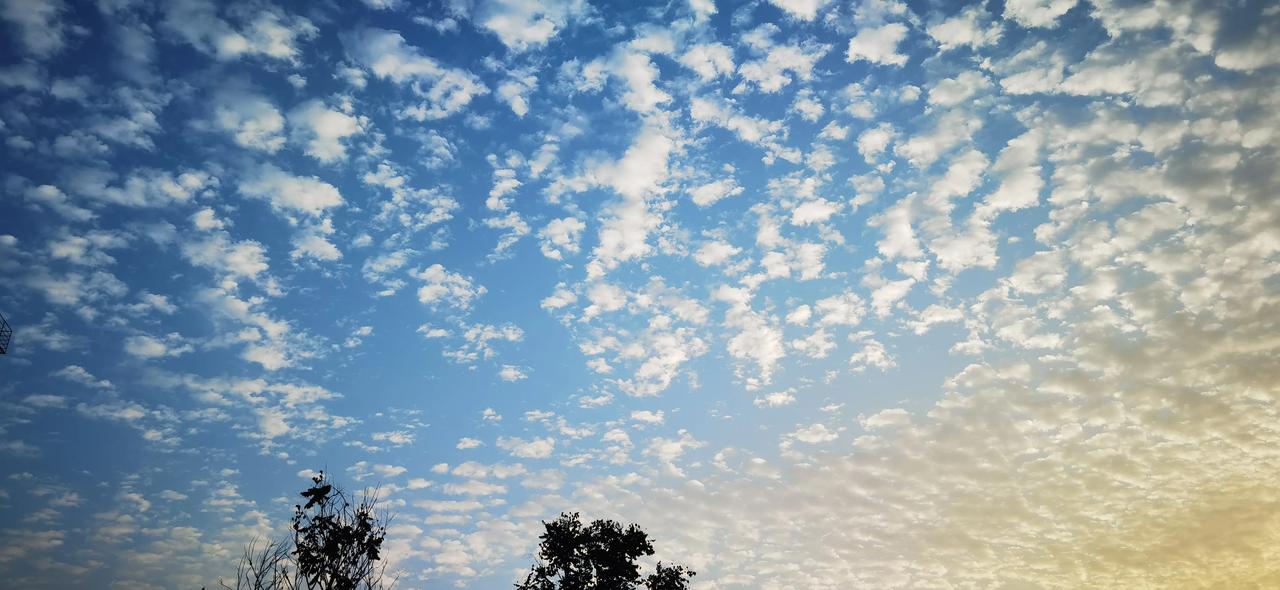 #秋日生活打卡季#秋天的天空,没有了大朵的云彩,一朵一朵,布满了天空,看的时间久