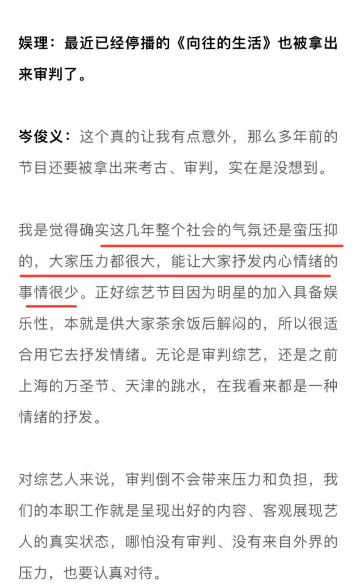 审判、考古…确实这几年整个社会的气氛还是蛮压抑的,大家压力都很大,能让大家抒发内心情绪的事情很少。