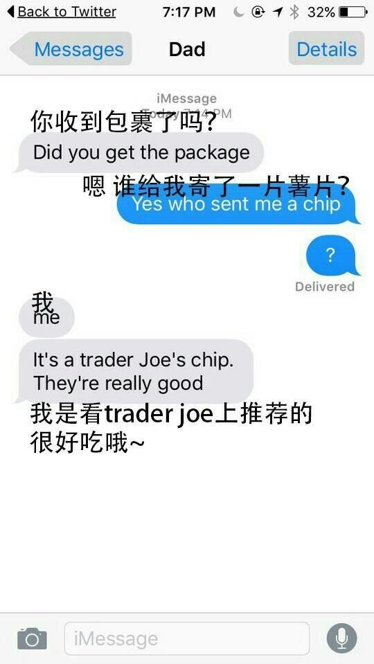 国外一网友收到了他爸寄到学校的一个特大包裹他满心期待地打开发现里面只有一片薯片,他爸就是为了让他尝个味儿,卧槽~这感天动地的父爱