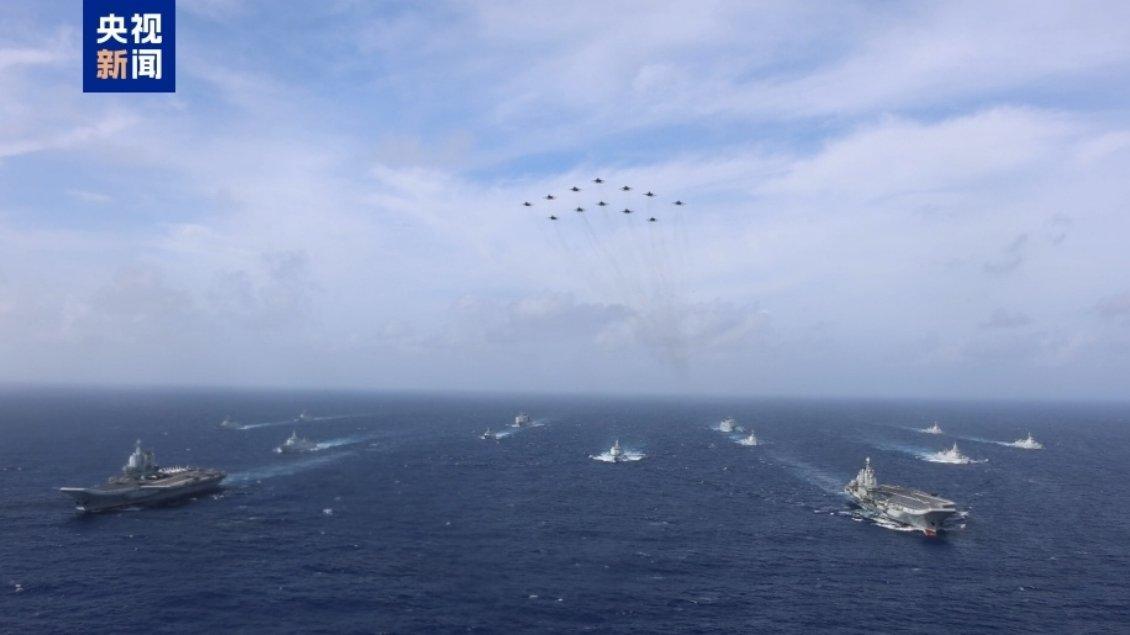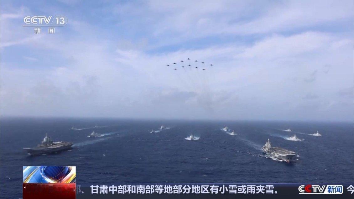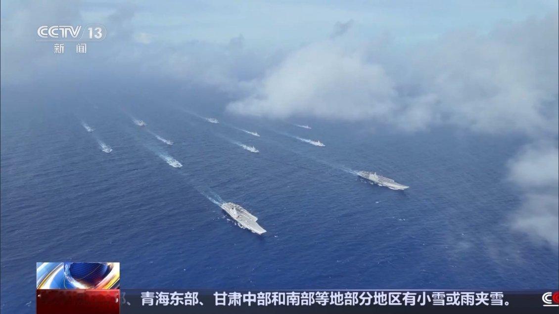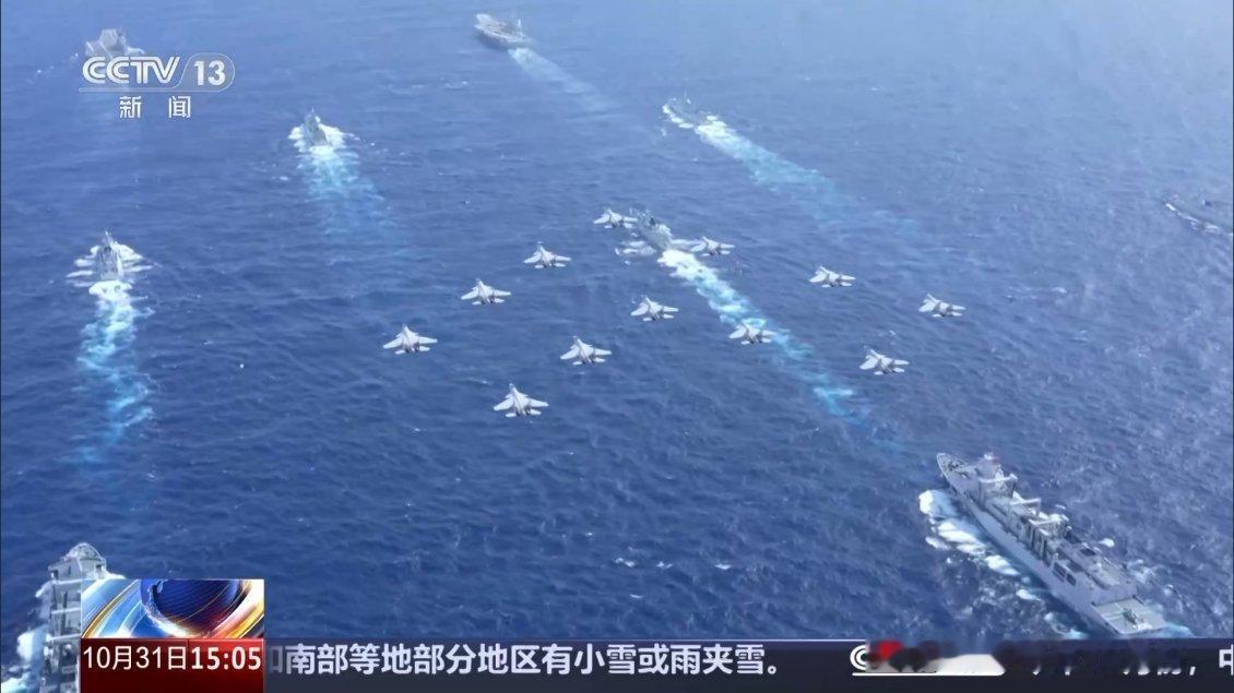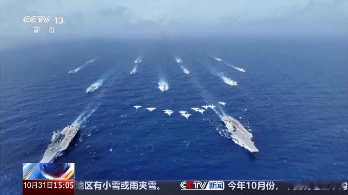 央视的官方画面,12架歼-15舰载机,其中9架歼-15B舰载机,3架歼-15老式舰载机,飞跃中国海军辽宁号航母、山东号航母战斗群上空。估计中国军迷激动的天灵盖要爆炸了!炫富是不是,炫富是不是,鹰里鹰气的!咱们航母还是太少了,增加个2倍,5倍,10倍应该就差不多了!单论船的数量,中国海军已经是世界第一了,差的是总吨位和大吨位舰艇。画面中,8艘防空驱逐舰随随便便就凑出来了,3艘055万吨大驱,5艘052D驱逐舰,美国海军航母战斗群现在可是凑一个完整的编队都难。中国海军双航母战斗群这可以和美国海军到太平洋上比划比划!自豪感油然而生,中国军迷终于等到这一天,真理在中国人手上!