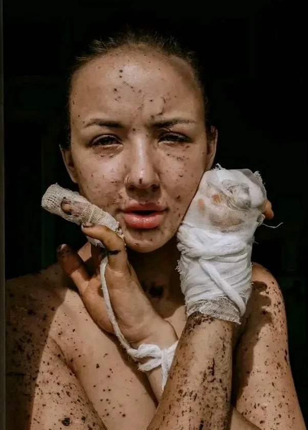 她是幸运的,活下来了。然而又是不幸的,身上取下200多枚弹片,双手已经失去正常功能,双耳听力丧失,双目也接近失明。