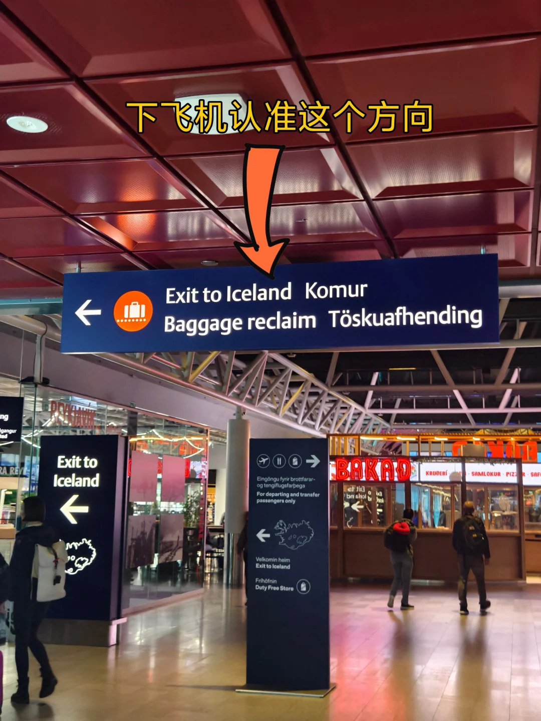 到达后认准这些标志走,如图2 3 4,会经过一个单向门如图5,然后就会看到标志性的冰岛欢迎语,如图6
