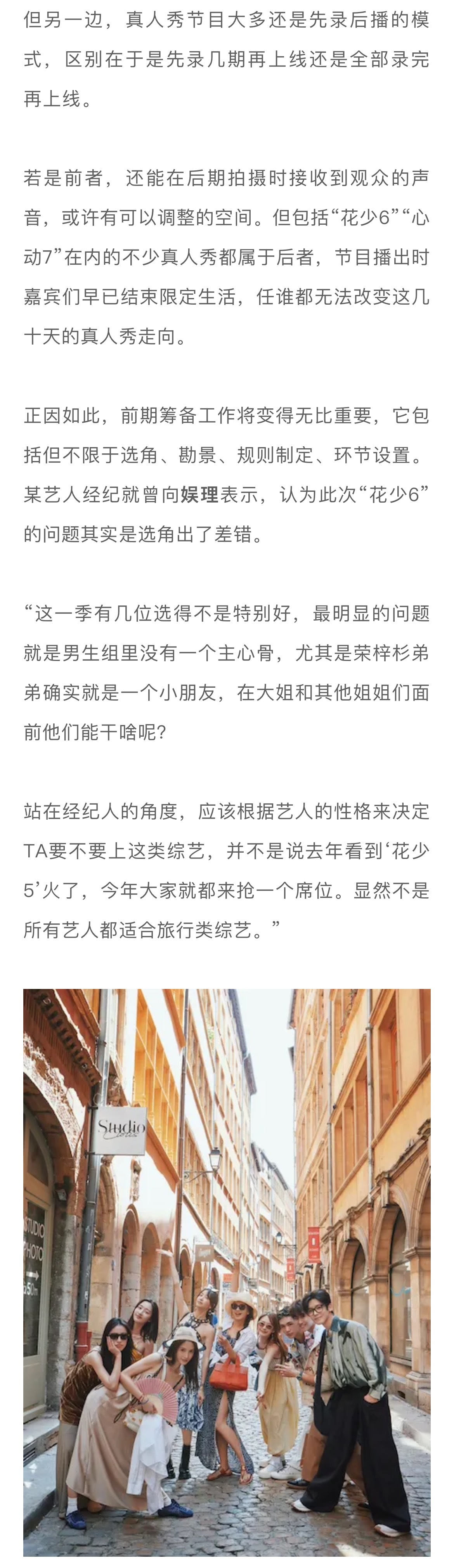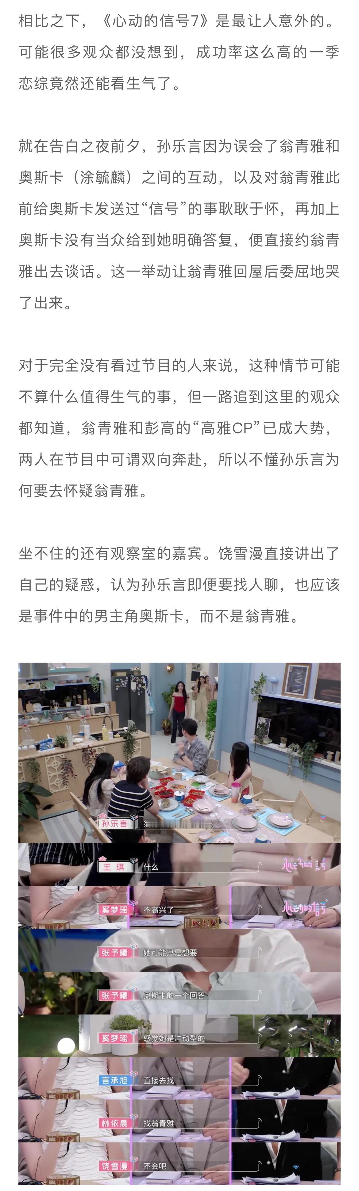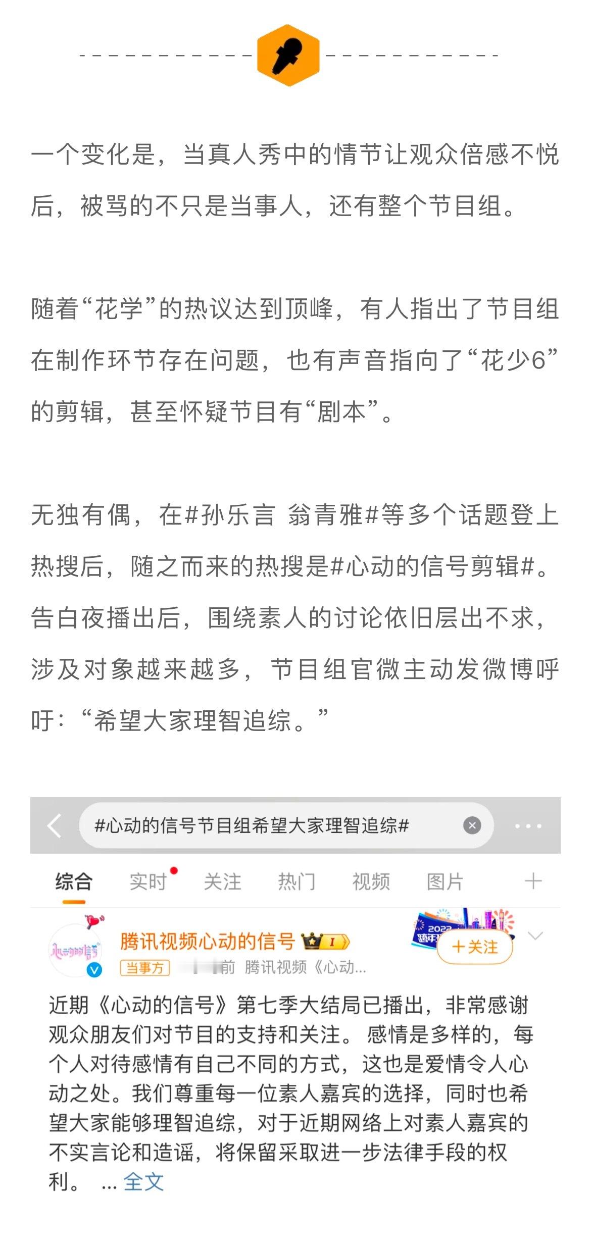 而绝大多数观众追“花少6”和“心动7”是为了感人的群像和甜蜜的嗑糖,“乳腺不友好”的背后,实则是一种预期错位,即观众所希望看到的和节目所呈现出的并不一致...#娱理锐评#↓