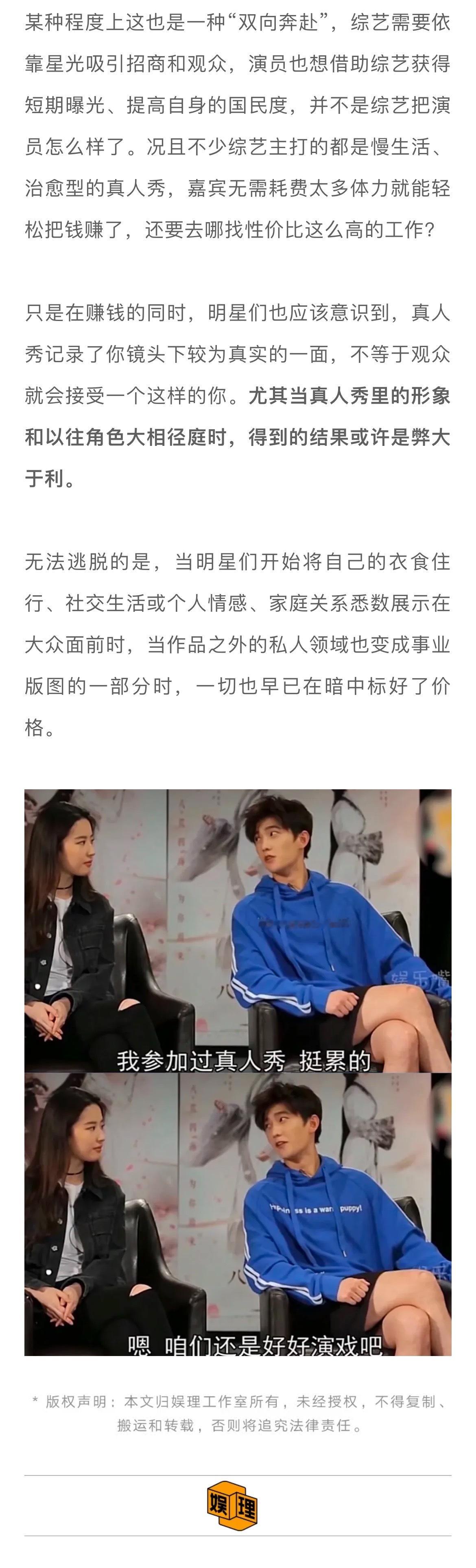 #谁能在真人秀里逃离负面舆论##演员是否该远离真人秀# 在娱理工作室看来,眼下这几档真人秀虽然掌握着流量、占据着舆论中心,但也亲手创造了属于自己的“风暴眼”。若想逃离,或许还应从自身作出改变,最紧要的就是学会正视观众的诉求。
