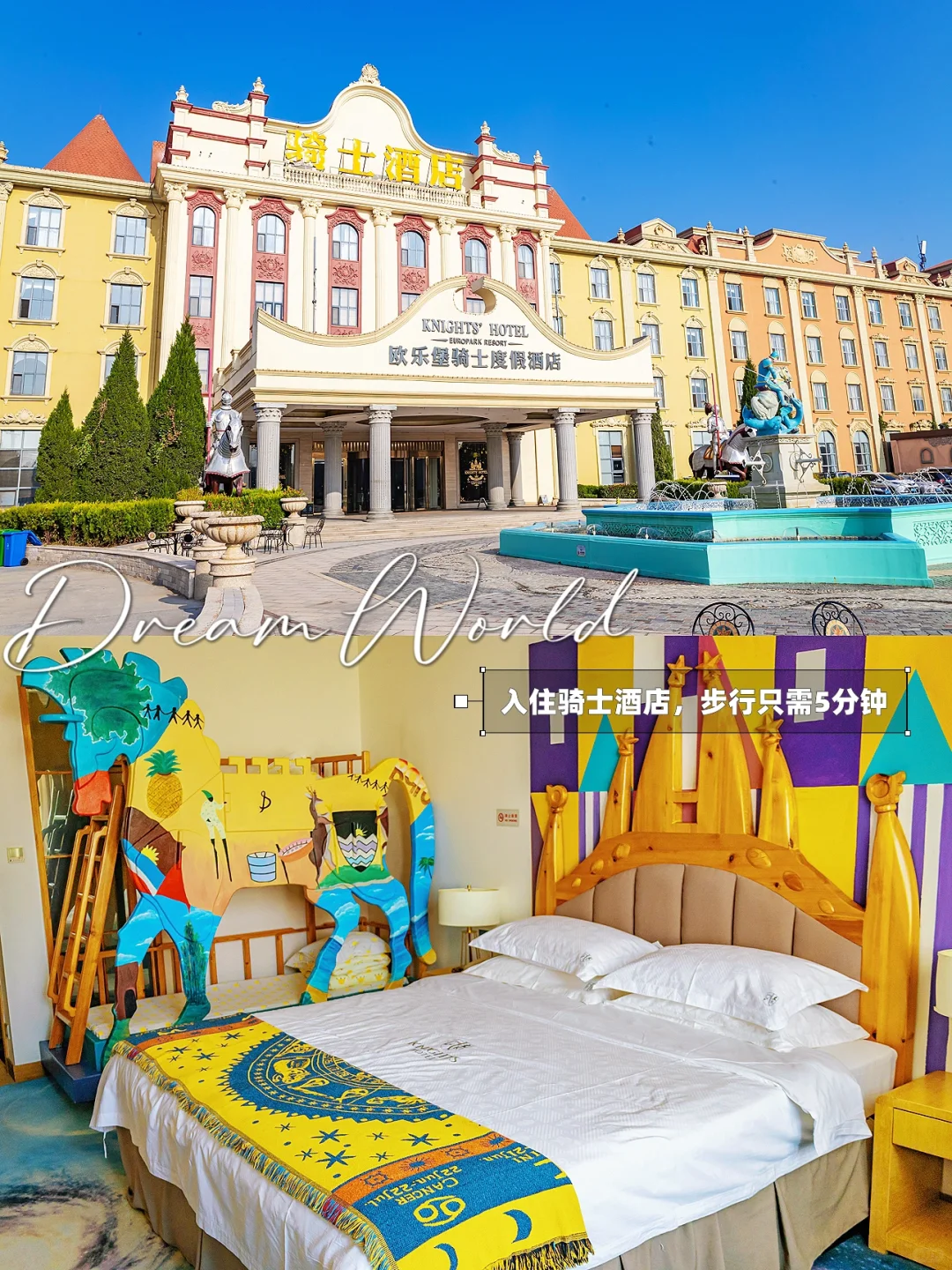 🏠可选择欧乐堡乐园配套的骑士酒店,离梦幻世界步行5分钟即达