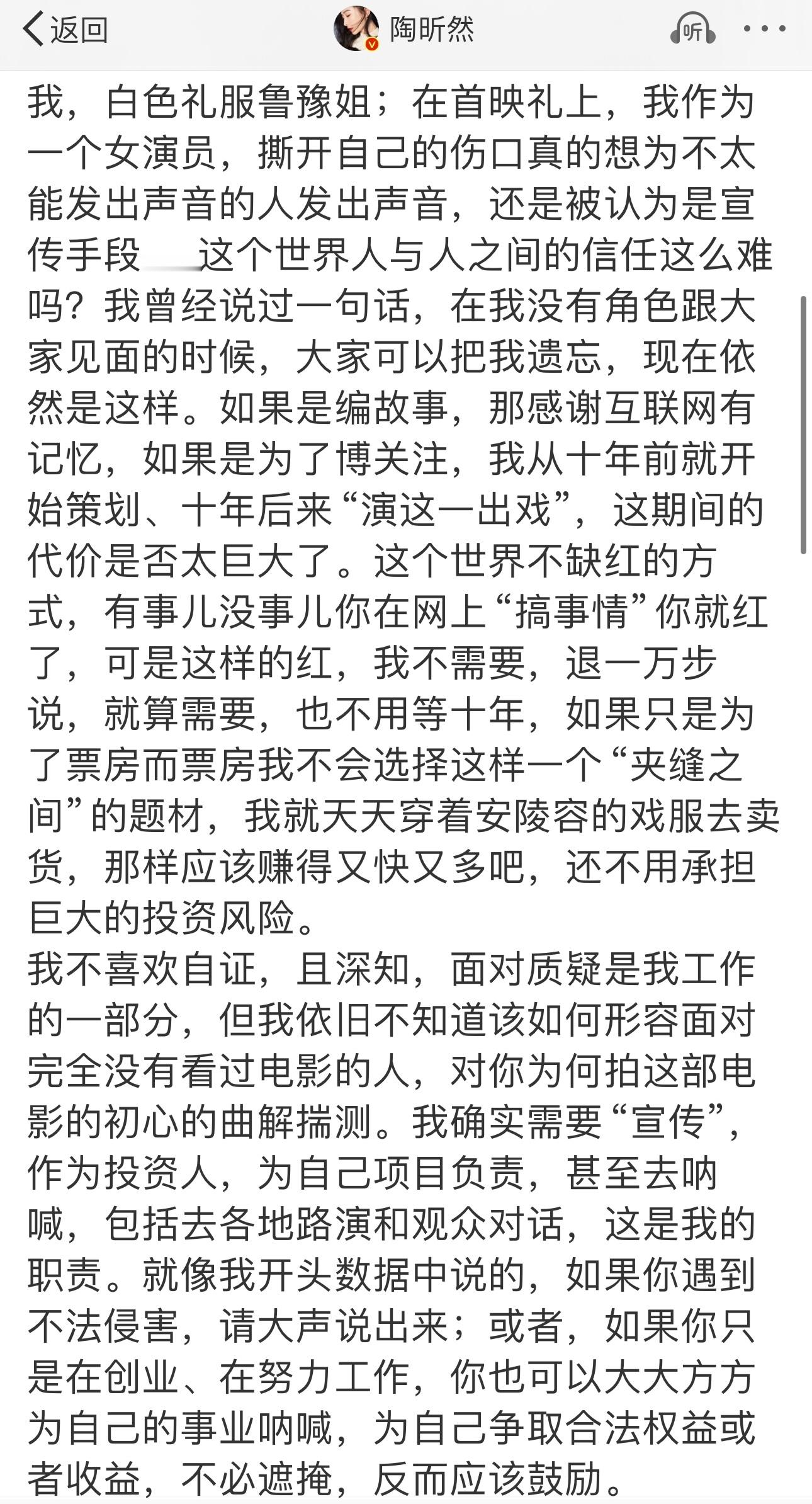 先恭喜陶昕然的《夹缝之间》路演顺利到了倒数第二站!这篇回应也是我看过最用心的解释和善意。