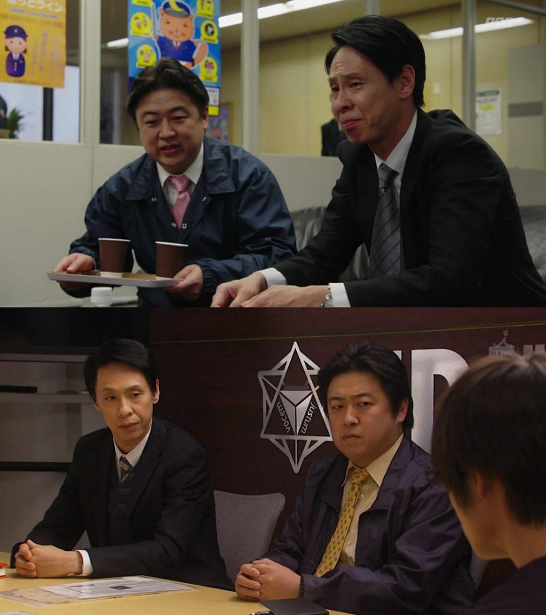 14/出现的警察一方是大仓孝二扮演的「西武蔵野署」刑警 毛利忠治,在非自然死亡和机动搜查队404中都有出演。他的搭档是酒向芳扮演的刈谷贵教,警視庁捜査一課刑事,所以两个人并不熟悉,搭档中也闹过很多小矛盾。(图5)