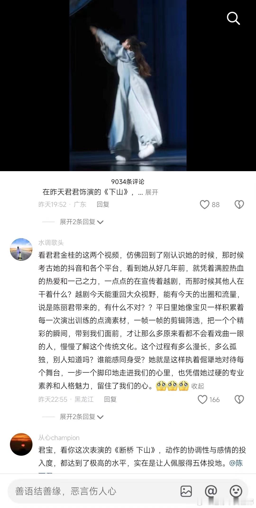 前几天刷到几条评论说。陈丽君用爱越剧的人设吃着流量的饭。我觉得荒唐。