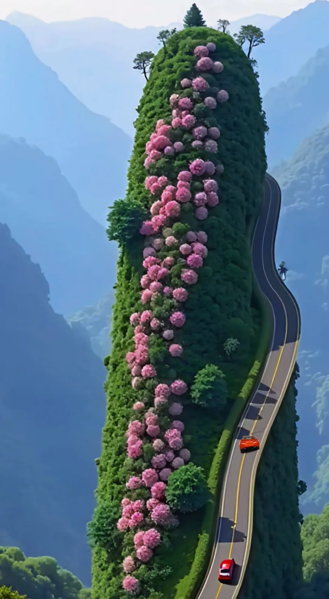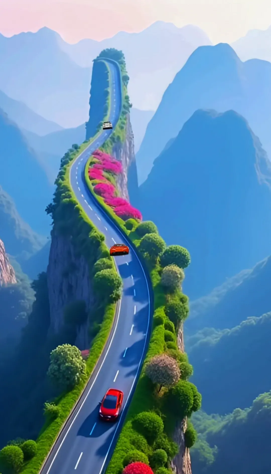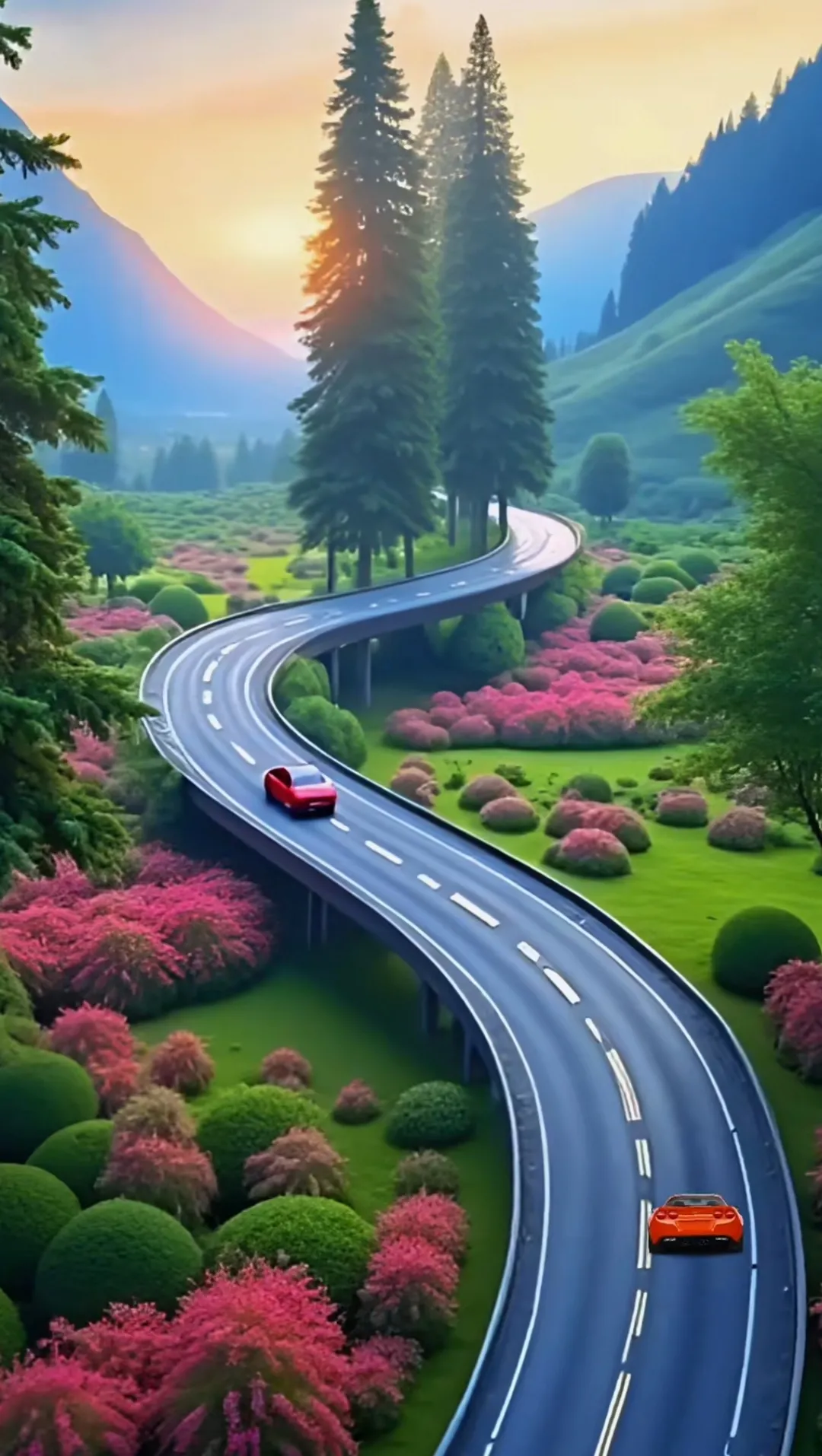 在风景如画的公路上,各种花草树木散发出宜人的气息,而蓝天白云则为这美丽的画卷增添了几分诗意与浪漫。这里是大自然的馈赠,让人流连忘返