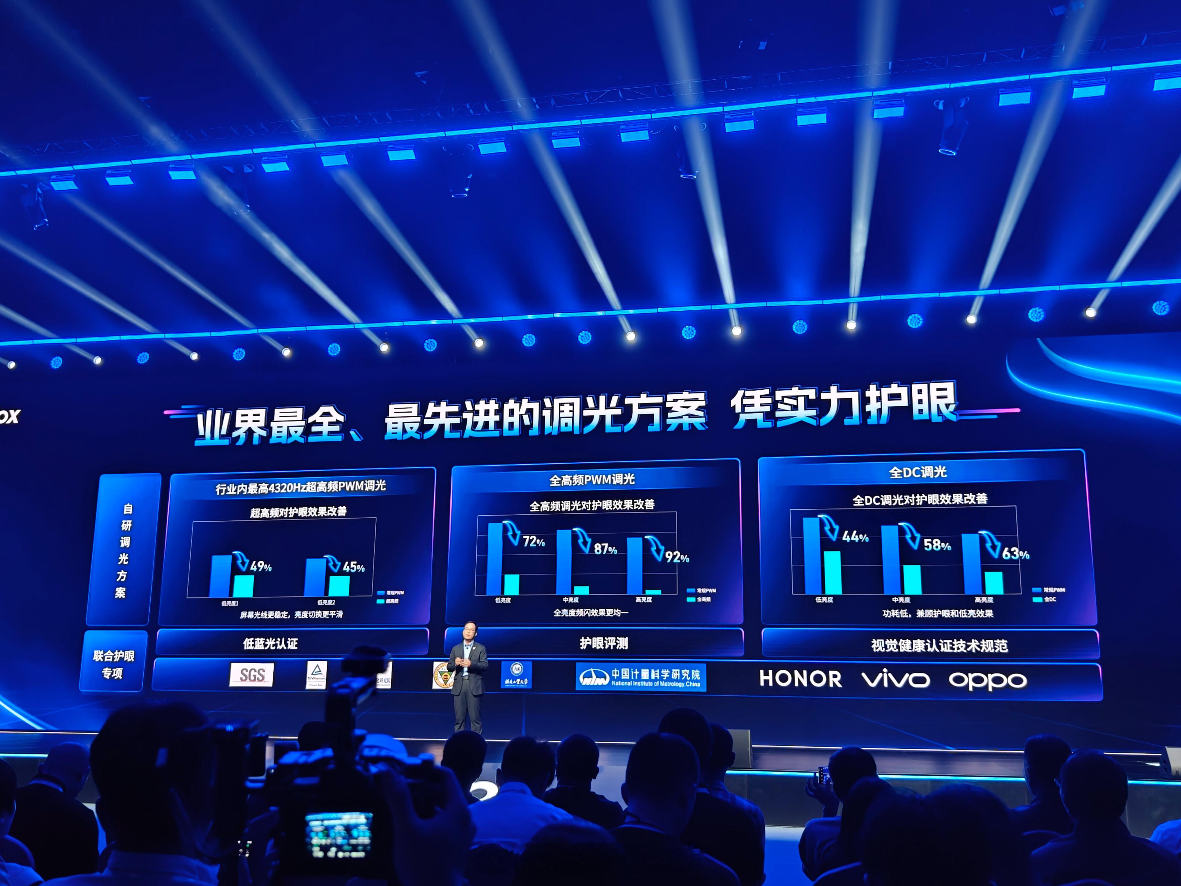 非凡中国屏 健康护眼是行业的发展趋势,维信诺在超高频有行业内最高4320Hz的超高频调光,屏幕光线更稳定, 亮度切换更平滑,频闪技术更加均一,采用全DC技术开发功耗更低,超高频调光技术也是更加的护眼