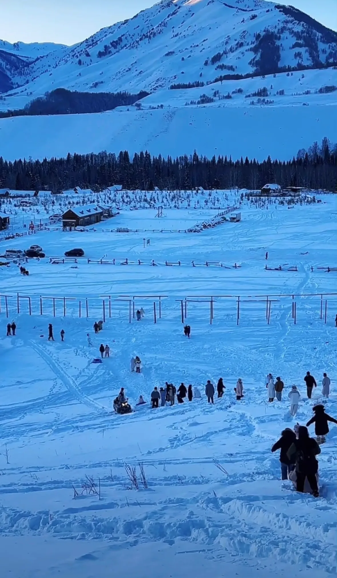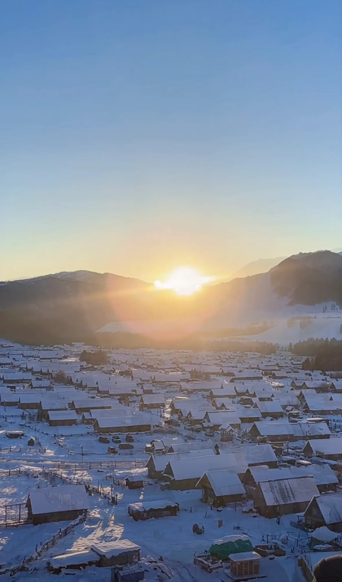 禾木村在雪中宛如梦幻之境,每一座小木屋都披上了厚厚的白披风,像是童话里精灵的住所