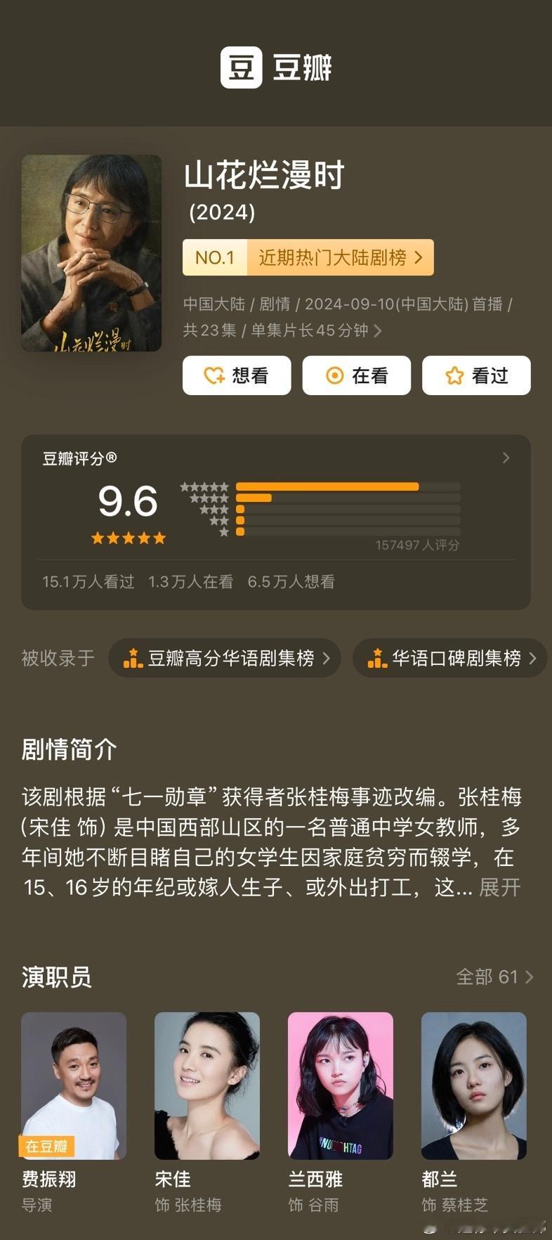 《山花烂漫时》豆瓣升至9.6!