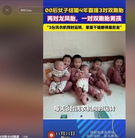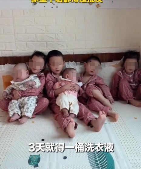 2024年11月,辽宁鞍山,一女子,怀孕后多次生子,三次均为双胞胎。如今家中有六个孩子,床铺已无法满足需求。她调侃说,要剪一百二十个指甲,三台洗衣机需同时运转,三天就会用完一桶洗衣液,家里无论干啥都得批发。 2019 年的那个春天,王悦发现自己怀孕了。去医院检查后,医生的话让她震惊不已 —— 她怀的是双胞胎。 这个消息如同晴天霹雳,又似意外之喜。王悦的家族中从未有过多胞胎的基因,这突如其来的双胞胎让她和家人都陷入了一种既兴奋又紧张的情绪之中。 随着孕期的推进,王悦承受着比普通孕妇更多的辛苦。身体的沉重、孕期反应的强烈,都让她备受折磨。但她心中始终怀着对新生命的期待,咬着牙坚持着。 终于,在一个阳光灿烂的日子里,她迎来了自己的第一胎,一对可爱的双胞胎女儿。看着那两个粉嘟嘟的小生命,王悦的心中满是幸福和感动,她觉得自己仿佛拥有了全世界。 然而,命运的转折总是来得让人猝不及防。2020 年,王悦再次发现自己怀孕了。她难以置信地看着验孕棒上的两条红线,心中充满了疑惑和不安。再次来到医院,检查结果再次让所有人震惊 —— 又是双胞胎。 这一次,王悦的心中充满了矛盾。她既为新生命的到来感到喜悦,又为未来的生活担忧。没有家族多胞胎基因的她,为何会连续两次怀上双胞胎?这个问题如同一个谜团,困扰着她和家人。 孕期的日子依旧艰难,但王悦没有退缩。她知道,这些孩子是上天赐予她的礼物,她必须勇敢地迎接他们的到来。 终于,在众人的期待中,她生下了一对双胞胎男孩。家里一下子热闹了起来,四个孩子的哭声、笑声交织在一起,让这个家庭充满了生机。 时间悄然流逝,转眼间到了 2023 年。王悦的生活本已被四个孩子填得满满当当,可命运却再次给了她一个巨大的惊喜 —— 她第三次怀孕了。检查结果出来,她怀的果然是一对龙凤胎。 随着孩子们的陆续出生,家里的生活发生了翻天覆地的变化。为了让孩子们有足够的空间睡觉,他们把床换成了大炕。孩子们一起睡在大炕上,虽然方便照顾,但也让家里显得更加拥挤。 家里添置了洗衣机,可还是无法满足孩子们大量的衣物清洗需求。尿布、奶粉堆满了屋子,玩具也多得无处安放。原本宽敞的家,如今变得拥挤不堪。 养娃的经济压力更是如一座大山,压得他们喘不过气来。幼儿园学费一年可能需要 5 - 10 万甚至更多,这还不包括生活日用和看病费用。孩子们的日常开销,如奶粉、尿布、衣服等,也是一笔不小的数目。 随着孩子们的成长,教育费用也会逐渐增加,如兴趣班、辅导班等。 在怀孕期间,医生曾劝王悦减产。医生告诉她,多胞胎的风险很大,不仅对她的身体有很大的伤害,对孩子们的健康也不利。 但王悦看着自己的肚子,心中充满了不舍。这些孩子都是她的宝贝,她怎么忍心放弃任何一个呢?她拒绝了医生的建议,决定勇敢地迎接这些孩子的到来。 王悦一家的故事在网上引起了广泛的关注,网友们对此有不同的态度。一些网友觉得头大,担心开支。他们认为,养一个孩子已经很不容易了,更何况是六个孩子。 这么多孩子的生活费用、教育费用等加起来,对于一个普通家庭来说是一个巨大的负担。他们担心王悦一家未来的生活将会面临很多困难。 另一些网友则对王悦一家表示祝福和羡慕。他们认为,王悦是一个非常幸运的妈妈,能够拥有这么多可爱的孩子。这些孩子是家庭的财富,他们的到来将会给家庭带来无尽的欢乐和幸福。 参考信源:河南乡村频道 (文中皆为化名)