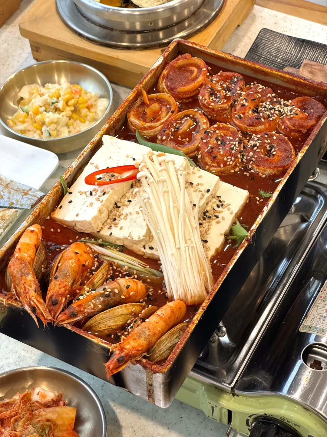 整条红闷带鱼和整条烤带鱼都很好吃! 红闷很入味,带鱼软糯细腻的那种! 烤带鱼会更香一点,小哥现场拆骨剔刺,看完强迫症满足!!烤带鱼配盐就很好吃了 还有带鱼闷饭也不错,套餐有中文,5个人点了4人餐人均100多吃的很撑! 就在海边不远,可以看到海!!真的很美! 🏠 궁서체 宫书体 📍 제주시 탑동로 11길 6, 2층 -