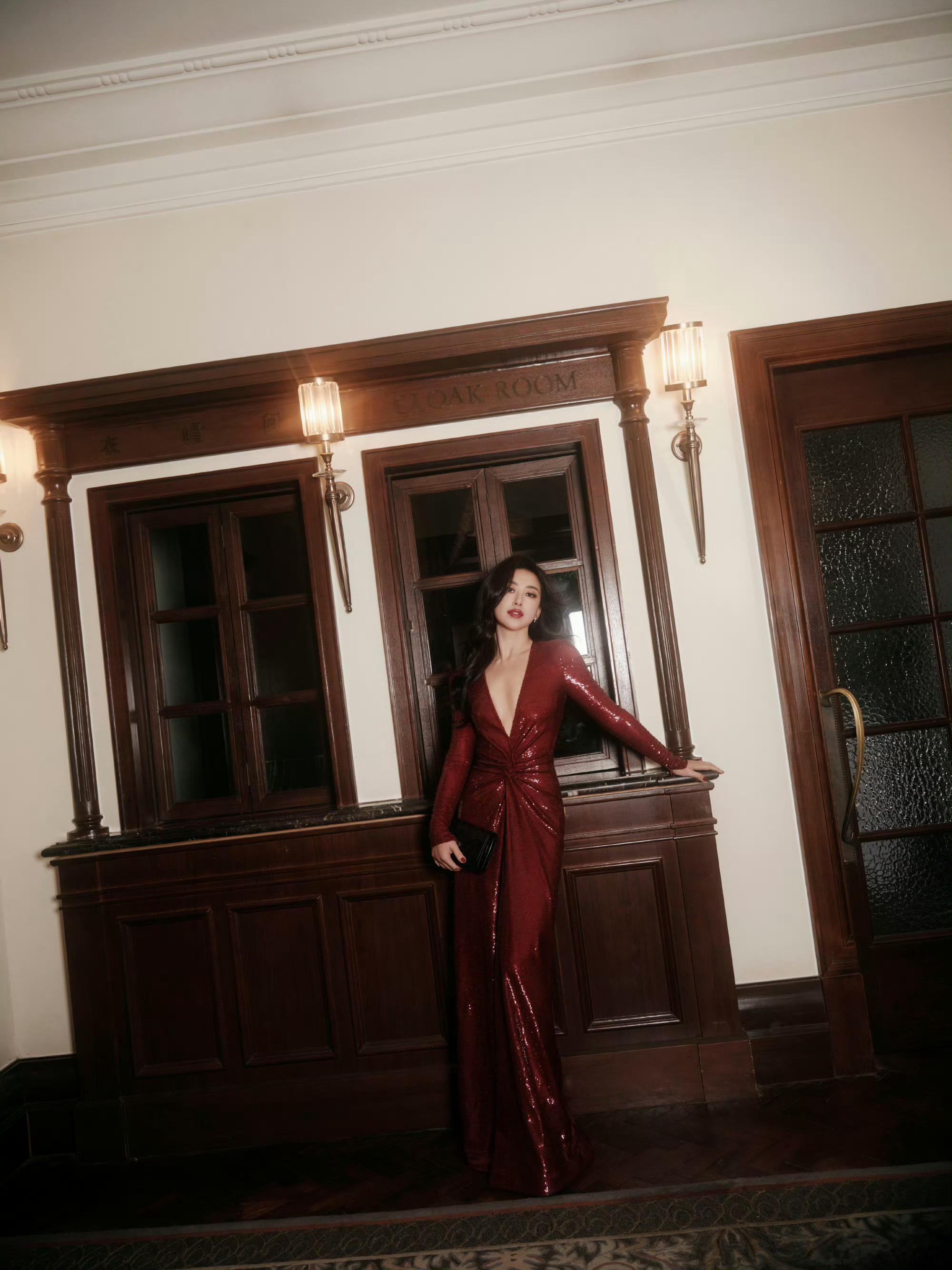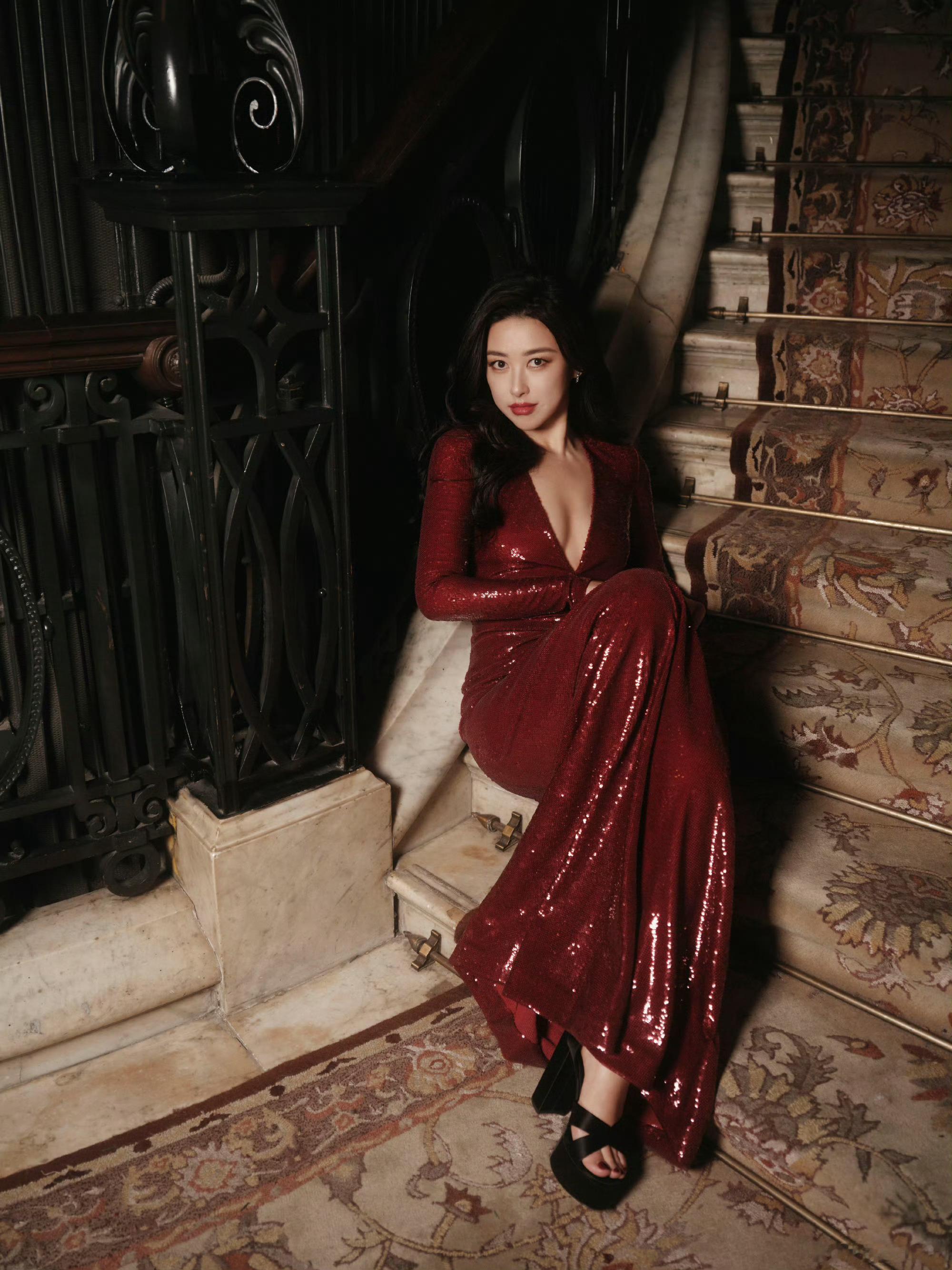 朱珠一身圣诞红深V连衣裙,尽显完美身材[doge]