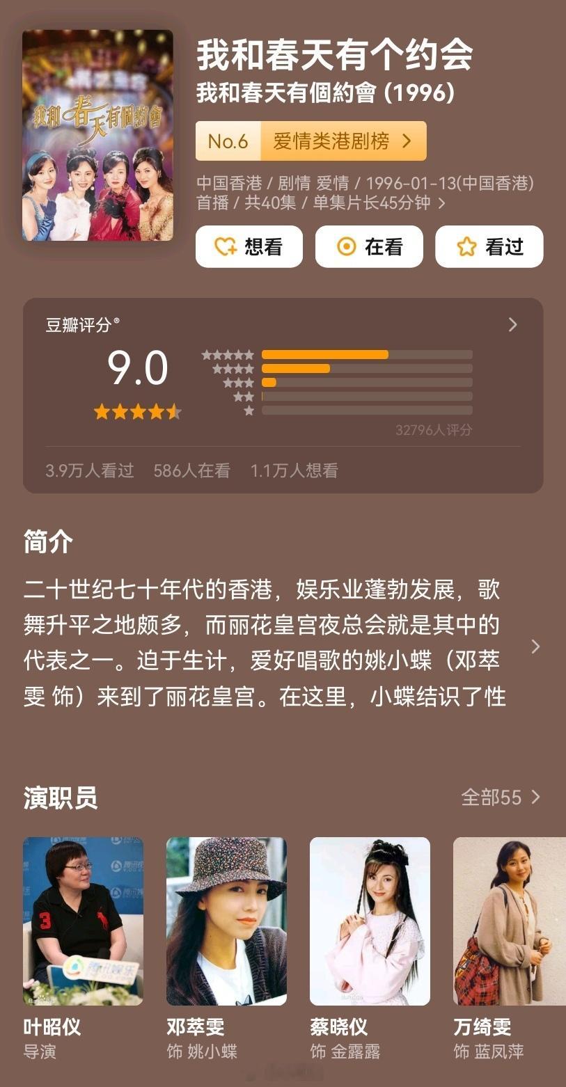 简介:1995年的上海、独立自强的姚小蝶通过唱歌比赛进入丽花皇宫成为歌手,在这里她认识了蓝凤萍,金露露,洪莲西并与她们成为至交好友,一起演绎了从默默无闻的路边小草成为全国皆知的歌星的故事。