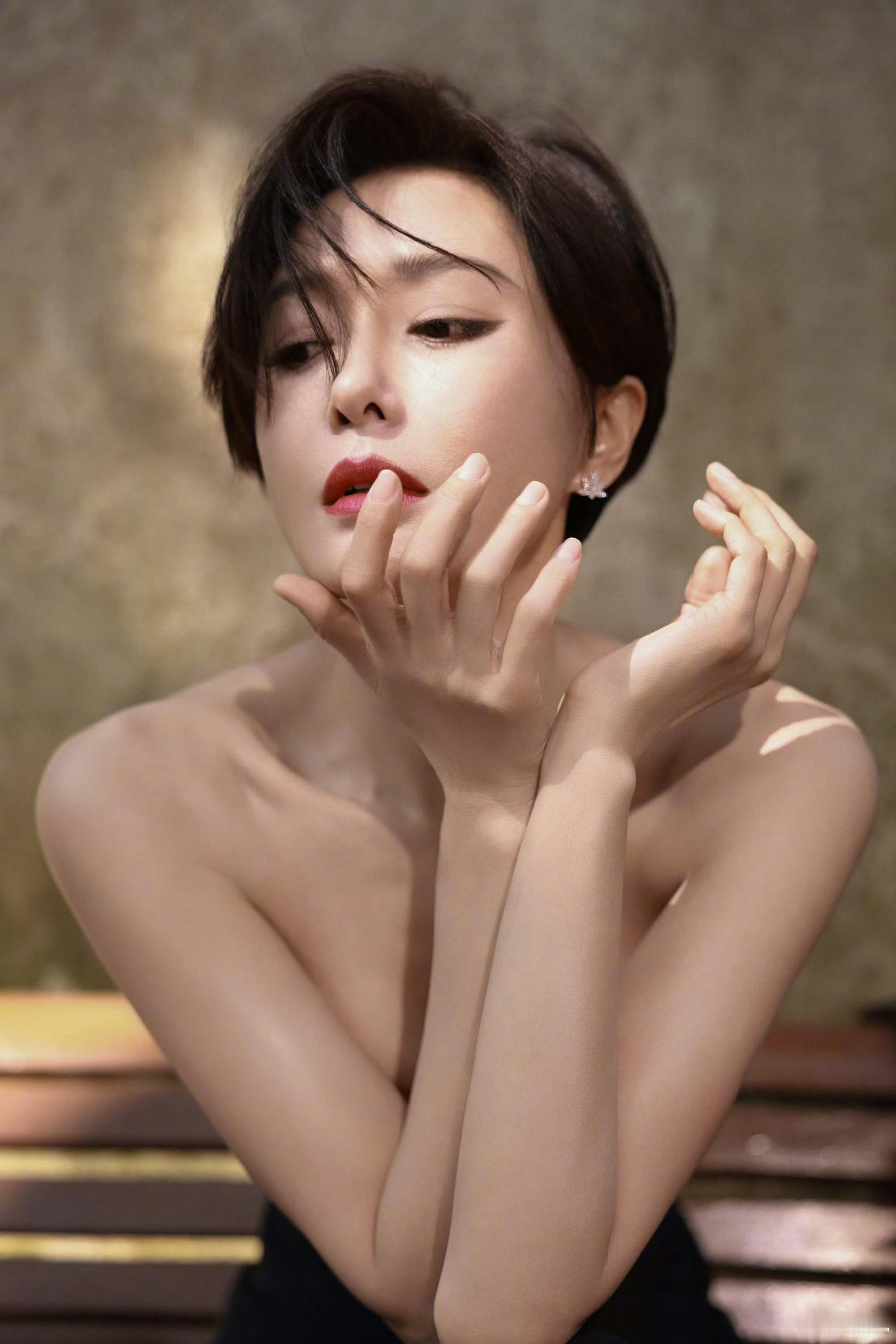 秦岚黑红渐变长裙 我天、、秦岚这个造型真的又美又飒啊啊啊🥺超短发帅的我有点内个了。。[可怜]