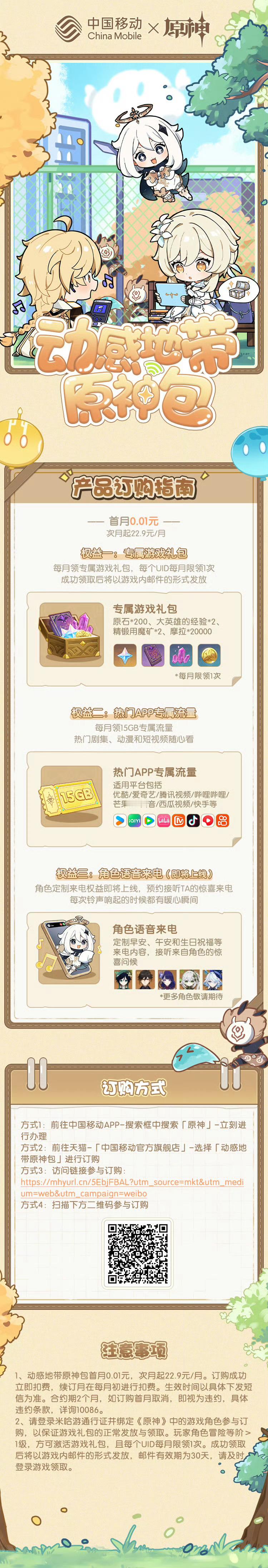 原神[超话]中国移动「动感地带原神包」已正式上线,需要的各位旅行者可以前往订