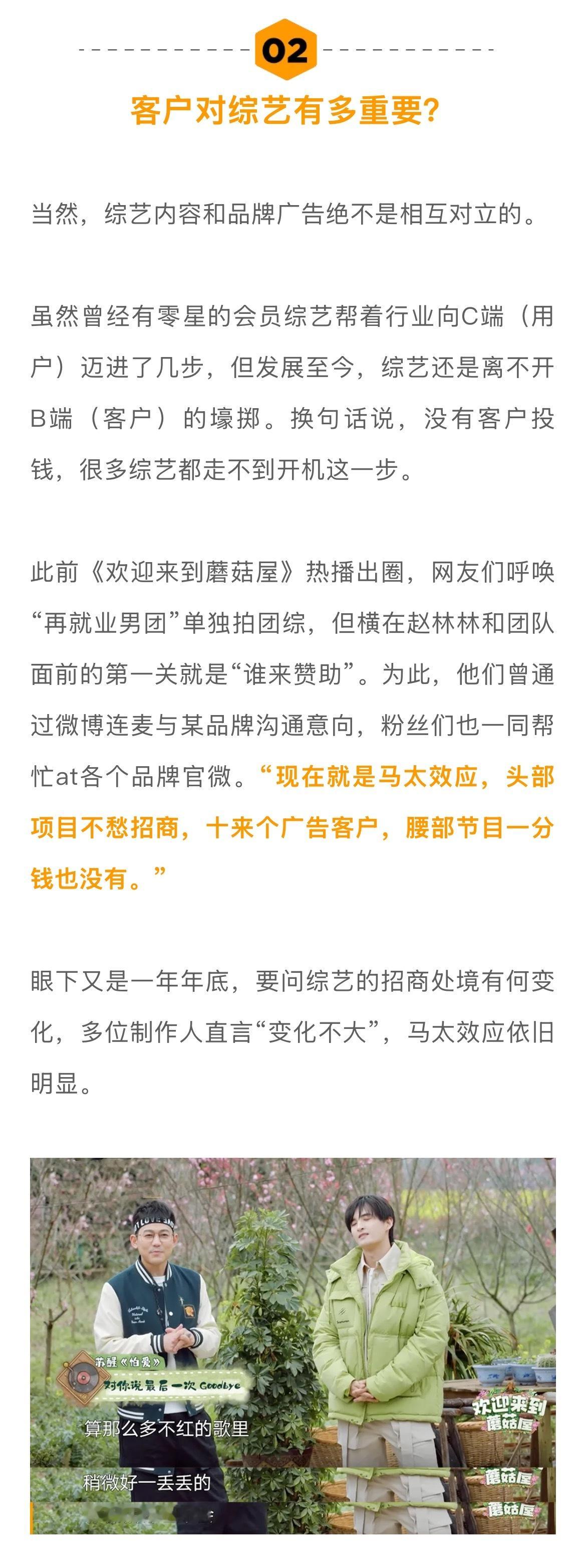 只是当品牌曝光影响到舞美呈现和视听体验时,是否意味着品牌方的话语权有些过大、一切都要围着客户转?就连综艺领跑者、爆款频出的湖南卫视都要给予客户“求大不求美”的高频露出,那其它综艺的招商处境,还好吗?