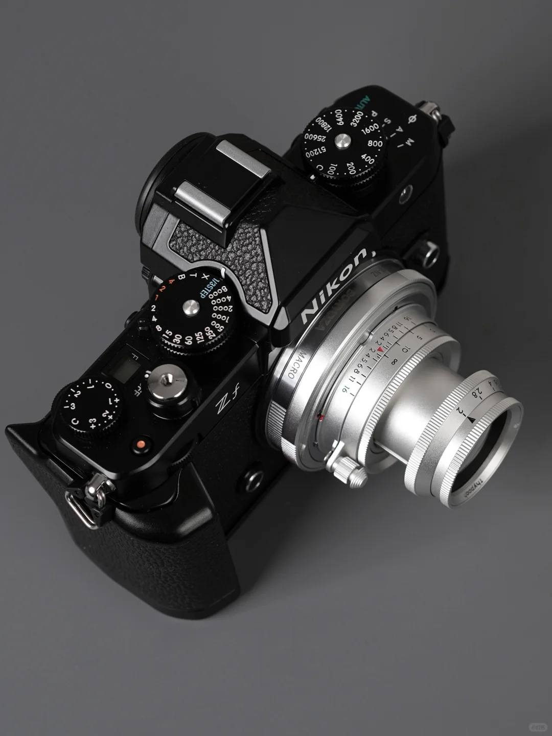 后面是天工环TZM-02,可以变自动对焦,不想手拧就用这个,主要问题是,有时候合焦不会特别准,有微微小虚一点的感觉,还有,微距能力不够强,比如90厘米的大概最近可以到60厘米左右,还有个最大的问题,因为这个卡口是凹进去的,然后这个镜头释放按钮又凸出比较多,后口比较大的镜头没办法装进去。