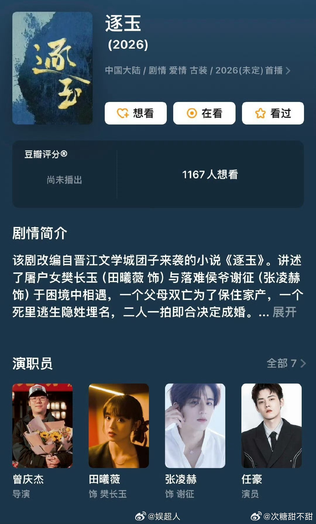 田曦薇新剧修改简介田曦薇新剧《逐玉》简介改啦!屠户女和落难侯爷先婚后爱,这剧
