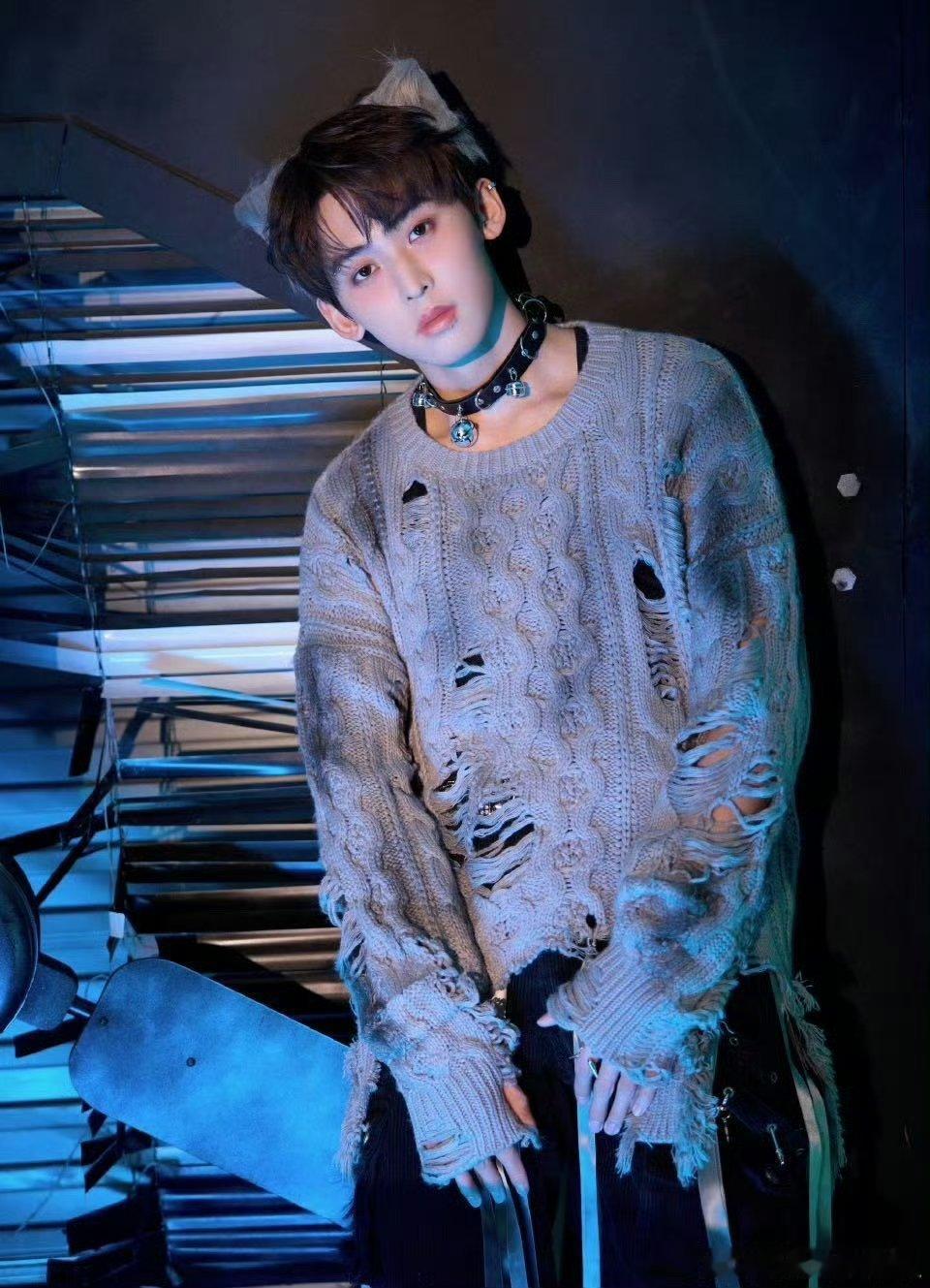 谁狼塑的唐九洲快来挨夸 唐九洲这回真的绝了,狼耳项圈配上灰色破洞毛衣和黑色高帮靴,小奶狼街头风又纯又欲,谁能不心动啊!