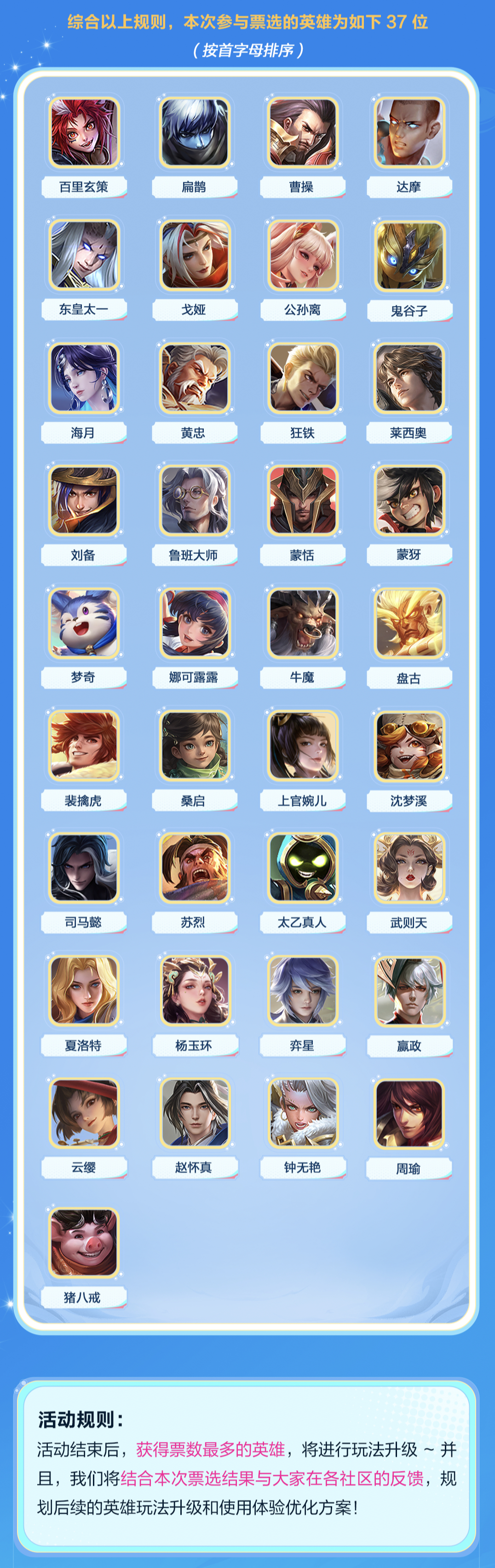 将从【37】名英雄中选出【1】名英雄进行玩法升级[思考][doge]