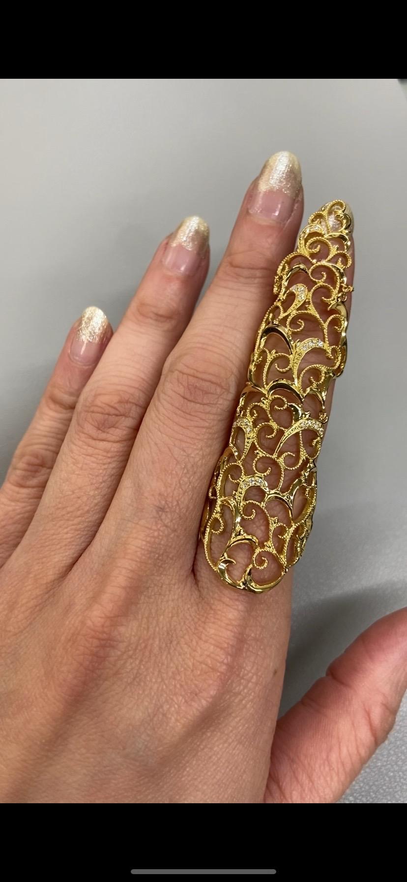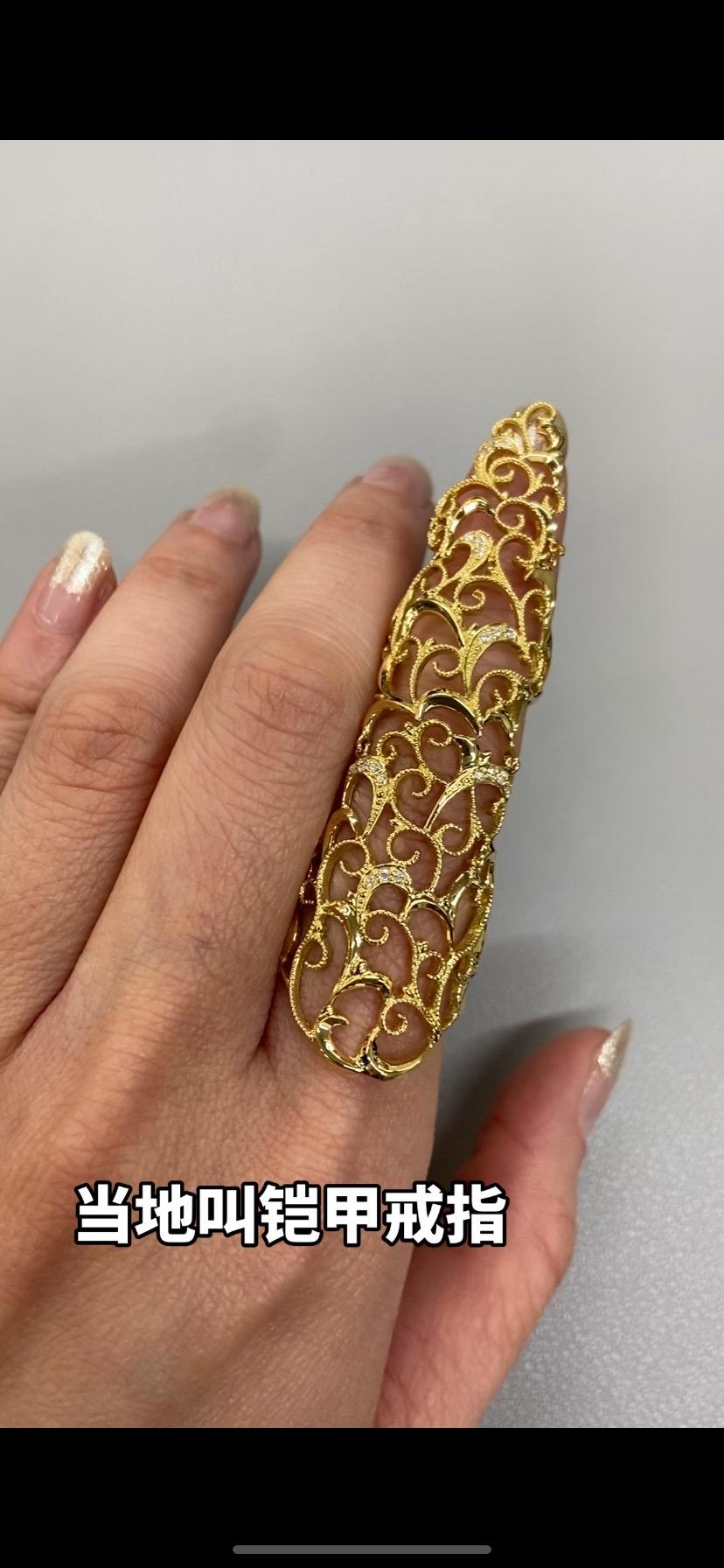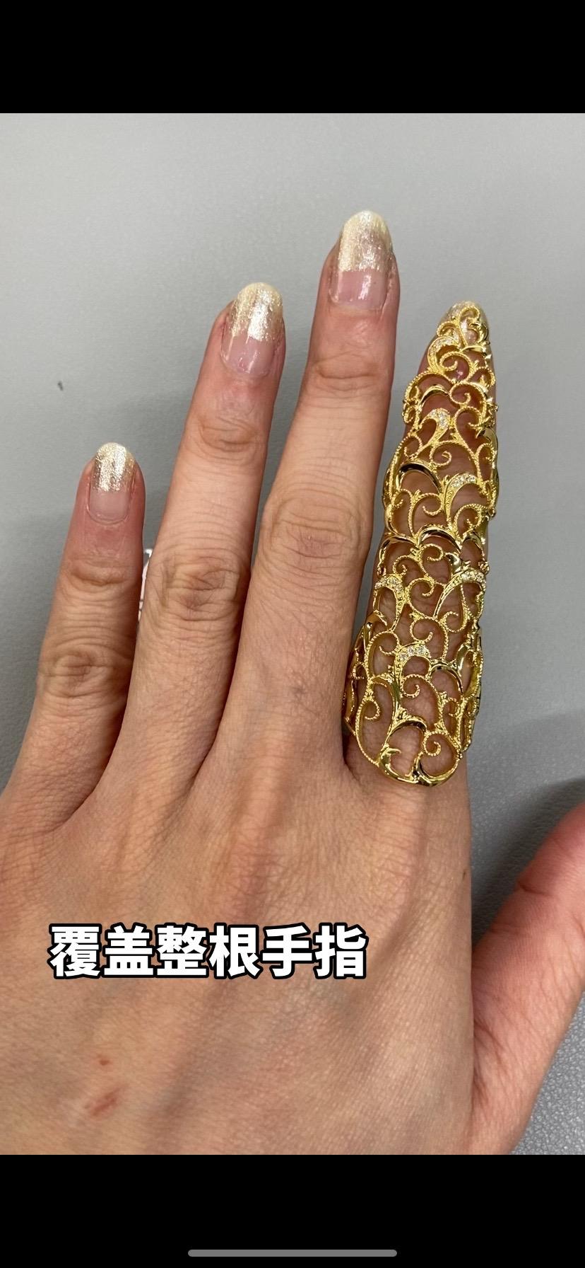好玩的设计。覆盖一整根手指,蕾丝质感的设计,当地叫铠甲戒指
