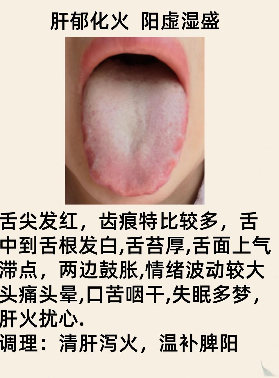 朋友们,大家好啊,我是中医张佩江,今天是舌诊挑战22天。 最近看舌头的朋友,越来越多了。挑战一天看85个舌象! 你拍舌像,我来分析,为每个拍舌象的朋友解惑, 今天的舌象案例分享。 肝郁化火 阳虚湿盛:舌尖发红,齿痕特比较多,舌中到舌根发白,舌苔厚,舌面上气滞点,两边鼓胀, 肾阴虚,肝郁化火:舌头两侧鼓胀, 舌尖红 有斑点舌前凹陷舌根黄腻。 肝气郁结,脾虚湿盛:舌头一层白苔,舌边锯齿印,舌头鼓胀,胖大。