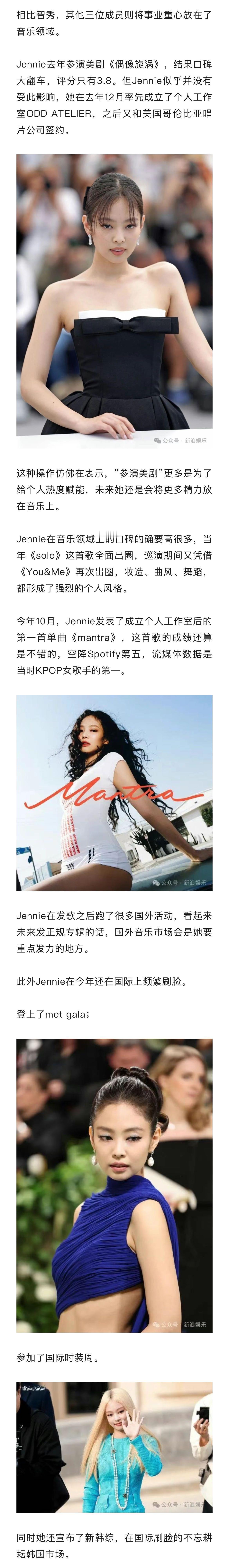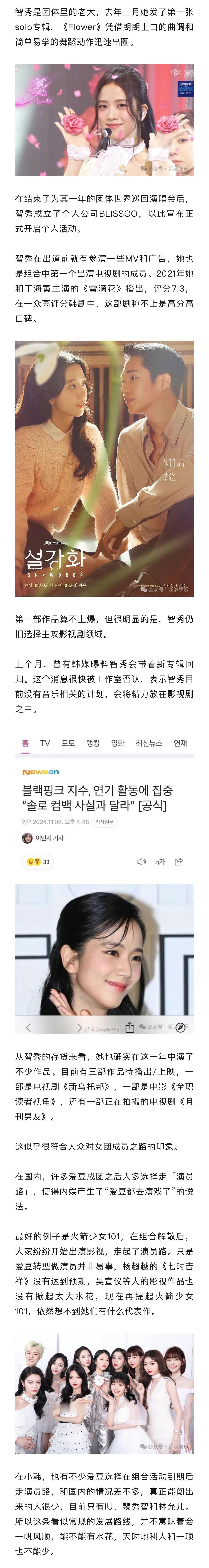 blackpink目前谁发展最好 blackpink单人发展谁赢了 智秀主演的《雪滴花》播出评分7.3,还有三部作品待播出/上映,很明显选择主攻影视剧领域;Jennie、Rosé在音乐领域上的口碑要高很多,都很看重欧美市场;Lisa今年在欧美市场的动作也很大,虽然偶尔有恋情传出,但目前看来Lisa并不想要回应,她应该会在这几年猛拼事业。