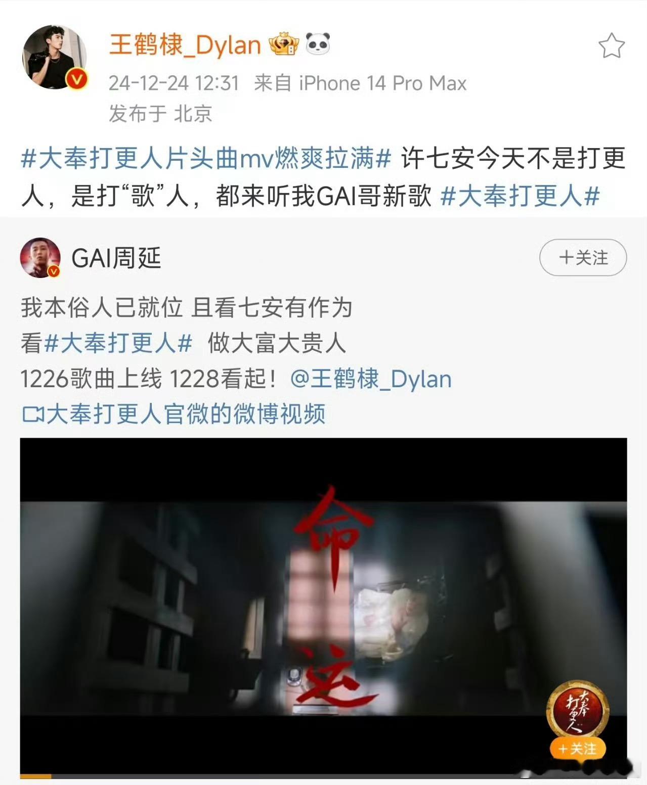 GAI8g冲浪喊话王鹤棣 王鹤棣GAI双向互call 大奉打更人 12月28日,《大奉打更人》开播,GAI和王鹤棣两个四川娃子带咱们嗨翻天,一起听《我本俗人》吧!